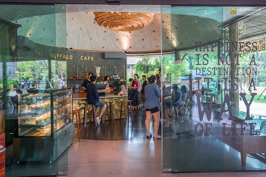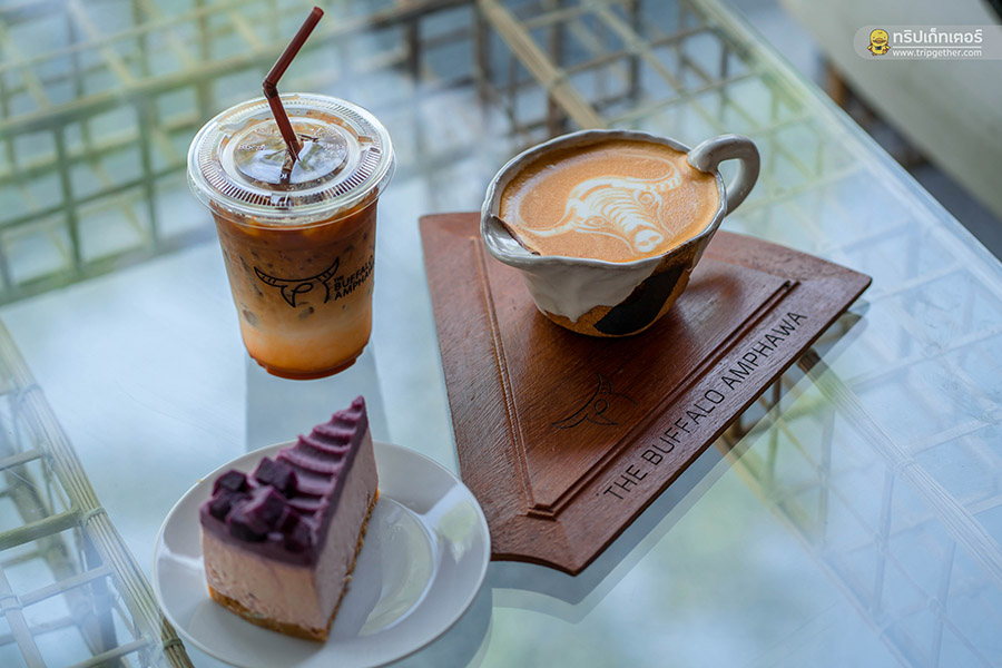 เดอะ บัฟฟาโล อัมพวา คาเฟ่ดีไซน์สุดเท่ที่สะท้อนวิถีชีวิตของชาวสมุทรสงครามได้เป็นอย่างดี ผ่านการตกแต่งและออกแบบที่เน้นใช้ไม้ไผ่เป็นวัสดุหลักของโครงสร้าง เพื่อให้บรรยากาศดูเรียบง่ายและเข้ากับธรรมชาติรอบด้าน และยังเหมาะมานั่งพักผ่อนจิบกาแฟริมน้ำแม่กลองแบบชิลล์ๆ นอกจากนี้ทางร้านยังเลือกใช้แก้วกาแฟเครื่องปั้นดินเผางานทำมือ เพื่อเสิร์ฟกาแฟแก้วอร่อยกับคุณอีกด้วย โดยมีเมนูแนะนำเป็น The Buffalo Coffee เมนูซิกเนเจอร์ที่มีเครื่องดื่มแบ่งออกเป็น 3 ชั้นด้วยกัน โดยชั้นล่างจะเป็นชาไทย ชั้นที่ 2 เป็นนมสด และชั้นบนสุดคุณสามารถเลือกได้ว่าจะสั่งเป็นกาแฟหรือโกโก้ นอกจากนี้ยังมีเครื่องดื่มชื่นใจอีกหลายเมนู รวมถึงเมนูเบเกอรี่ก็มีเสิร์ฟความอร่อยเช่นกัน ยังไม่หมดเพียงเท่านี้ที่นี่ยังมีมุมถ่ายรูปเท่ๆ รวมถึงโรงแรมดีไซน์กิ๊บเก๋ และร้านอาหาร Rusty Rose สุดชิคให้คุณได้โพสต์ท่ากันอีกเพียบเลยนะ