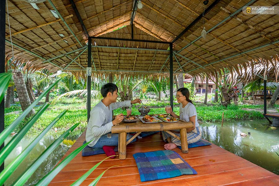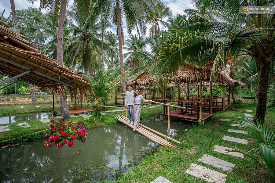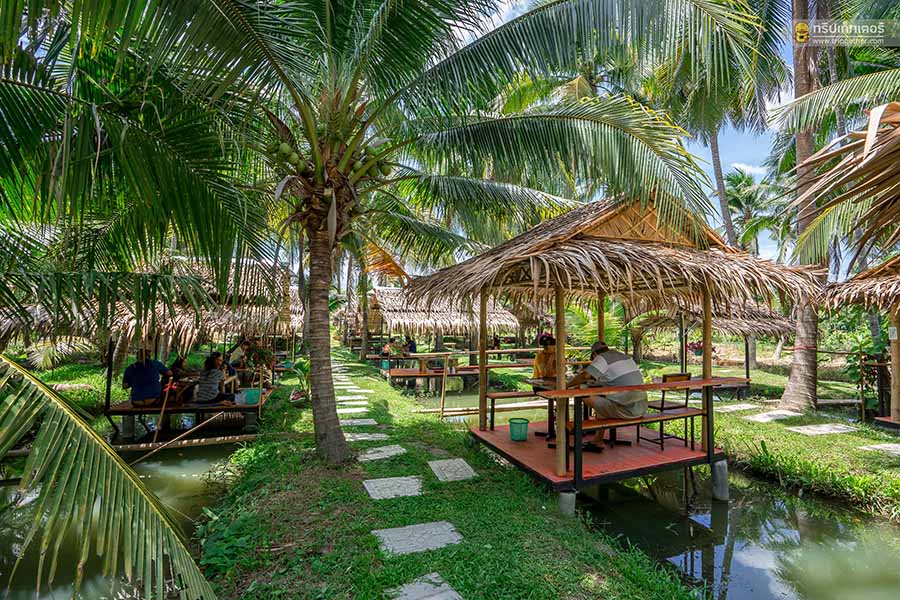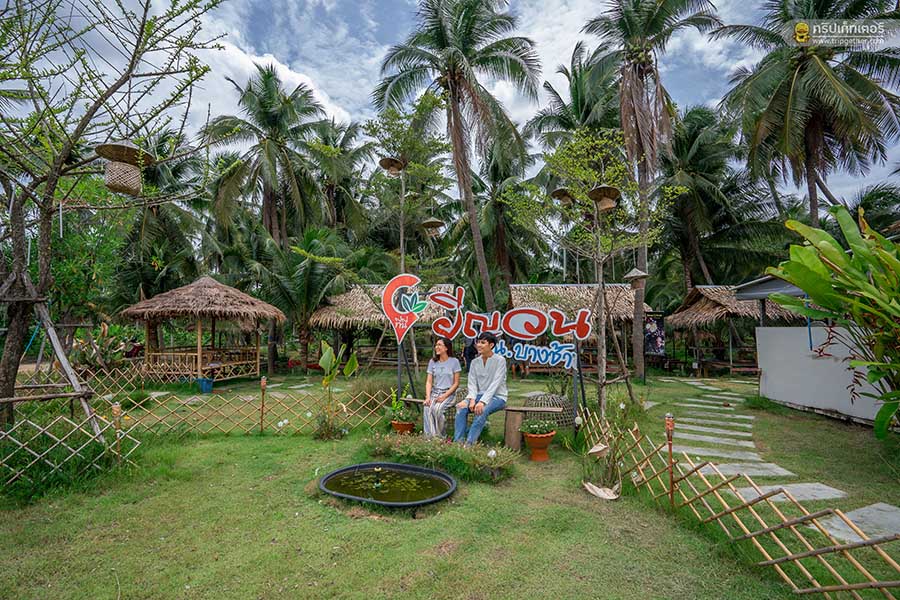 ร้านอร่อยเด็ดแห่งนี้เต็มไปด้วยบรรยากาศอันร่มรื่นของสวนมะพร้าวดั้งเดิมที่เพิ่มเติมที่นั่งบนร่องสวนให้ฟีลลิ่งแบบอยู่แนบชิดติดกับธรรมชาติ สำหรับที่นั่งที่นี่ก็มีด้วยกันทั้งหมด 29 ซุ้ม บรรยากาศที่ว่าสุดยอดแล้วแต่รสชาติอาหารก็ยังสุดยอดไม่แพ้กัน สำหรับเมนูของที่นี่ก็จัดเต็มไปด้วยเมนูสุดแซ่บไม่ว่าจะเป็น ปลากระพงสามรสสูตรเฉพาะของทางร้าน หมูกรอบผัดพริกเกลือ หมี่กะเฉด ต้มแซ่บกระดูกอ่อน ปลาคังผัดฉ่าและไก่ทอดเกลือ ซึ่งแต่ละเมนูก็ทำจากวัตถุดิบสดใหม่วันต่อวัน หรือใครที่ร้อนๆ มาลองมาสั่งน้ำมะพร้าวสดๆ หรือเครื่องดื่มสมูทตี้ดูรับรองว่าชื่นใจทั้งรสชาติและบรรยาากาศอย่างแน่นอน