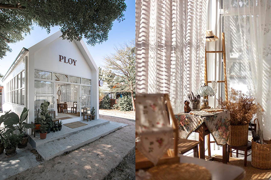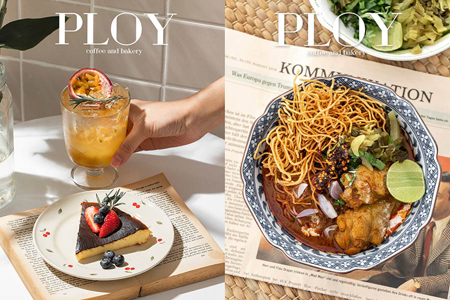 อีกหนึ่งคาเฟ่น่ารัก Ploy’s Coffee and Bakery มาในสไตล์บ้านน้อยสีขาวสุดอบอุ่น เป็นร้านที่เกิดจากคววามรักและความหลงใหลในการทำขนมของเจ้าของร้าน ด้วยตัวร้านสุดโฮมมี่นี้มาพร้อมการตกแต่งแบบเรียบง่ายด้วยเฟอร์นิเจอร์สไตล์วินเทจผสมผสานกับความเป็นสมัยใหม่ได้อย่างลงตัว ในส่วนของเมนูอาหารมีให้ลิ้มลองทั้งคาวหวาน เบเกอรี่มีไม่เยอะแต่อร่อยถูกใจอย่าง ชีสเค้กหน้าไหม้ เค้กแครอท และ Homemade Scones หรือหากเป็นอาหารที่นี่ก็จะมีเสิร์ฟบางเมนูในวันเสาร์และอาทิตย์อย่าง น้ำเงี้ยวและข้าวซอย โดยทุกเมนูเจ้าของร้านรังสรรค์อย่างพิถีพิถันเพื่อให้ได้รสชาติที่ดีที่สุดสำหรับผู้มาเยือน เป็นร้านที่บอกเลยว่าต้องถูกใจเหล่า Cafe Hopper อย่างแน่นอน