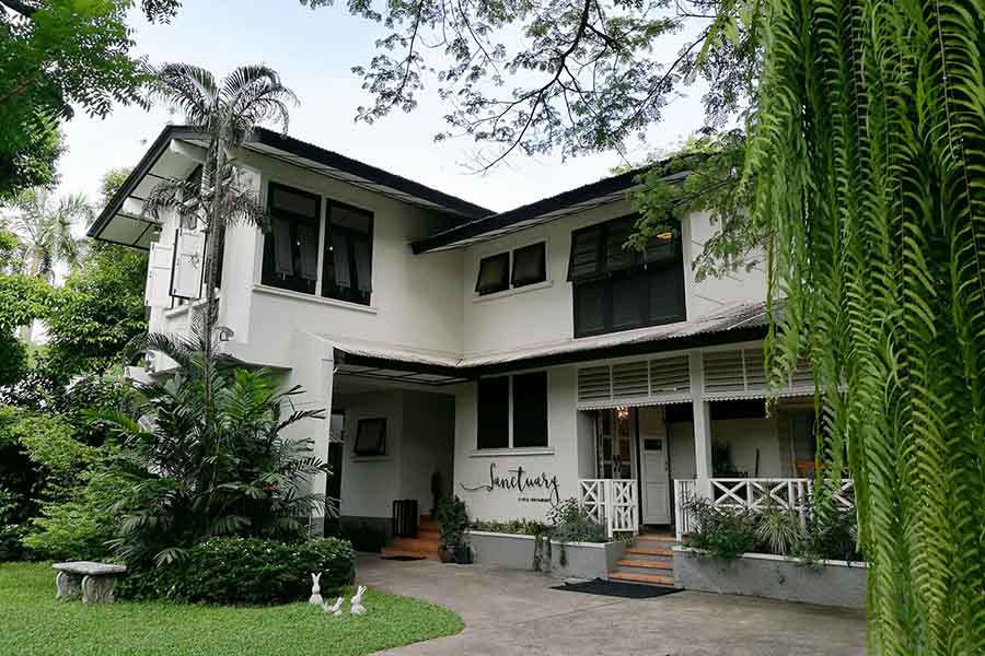 แซงชัวรี่ คาเฟ่ ร้านคาเฟ่ดีไซน์สุดเก๋โซนปากน้ำ ตัวร้านเป็นบ้านสีขาวทรงวินเทจ ภายในบ้านตกแต่งน่ารัก มีโต๊ะให้เลือกนั่งหลากหลายมุม ถัดมาด้านหลังจะเป็นโซนการ์เด้นท์ มีห้องเรือนกระจกให้นั่งรับแสงแดดชิลล์ๆ ยามบ่าย บรรยากาศขอบอกว่าเต็มสิบ ในส่วนของเมนูก็มีเสริฟครบคาวหวาน รวมถึงเครื่องดื่มสดชื่นๆ ก็มีให้เลือกมากมาย ที่สำคัญยังรับจัดงานแต่งงานอีกด้วย เป็นอีกหนึ่งร้านสวยที่ทุกคนไม่ควรพลาดเลยจริงๆ