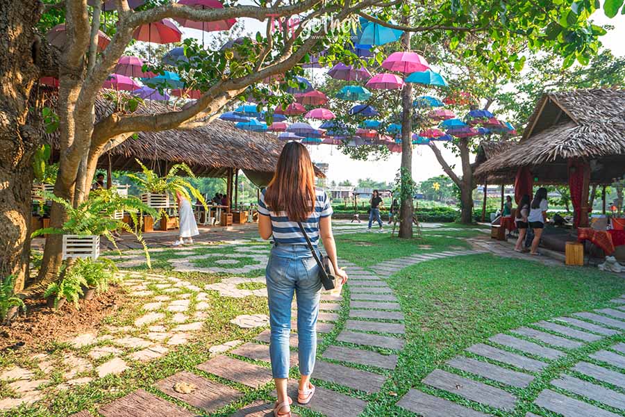 บ้าน ๑,๐๐๐ ไม้ คาเฟ่ แอนด์ ฟาร์ม อีกหนึ่งจุดเช็คอินสุดกรีน ที่เหมาะกับทุกวัยในครอบครัว ที่นี่บรรยากาศพันไม้สมชื่อ แวดล้อมด้วยต้นไม้ใหญ่และพืชผักอีกหลายสายพันธุ์ ด้านหน้าจะเป็นคาเฟ่ ส่วนด้านในนั้นจะเป็นท้องนาและบ่อน้ำ สามารถดำนาหรือพายเรือได้อย่างเต็มที่ หากเริ่มเหนื่อยก็ต้องมาลิ้มลองกับเมนูเด็ด ทั้งของคาวและของหวาน ที่บอกก่อนว่าอาจรอนานหน่อย แต่รสชาติดีอย่างแน่นอน