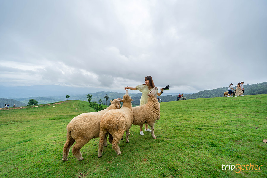 Akha Farmville คาเฟ่เล็กๆ ที่ทำมาจากวัสดุจากธรรมชาติและมีกลิ่นอายการตกแต่งแบบชาวอาข่าตั้งอยู่บนดอยที่โอบล้อมไปด้วยภูเขาทุ่งหญ้าเขียวขจี ไฮไลท์อยู่ที่ฝูงแกะน่ารัก ตัวปุกปุย แกะของที่นี่เป็นสายพันธุ์คอริเดลซึ่งมีลักษณะมีขนหนานุ่มและเป็นมิตรสุดๆ ถ่ายรูปกับน้องๆ กลางทุ่งหญ้าให้ฟีลเหมือนอยู่ต่างประเทศเลย