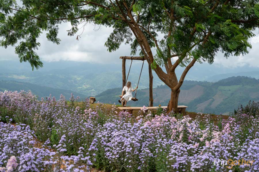 ภูภพค่ำ คาเฟ่ที่จะทำให้ทุกคนได้รูปกลับไปตั้งโปรไฟล์ใหม่เพราะนอกจากเครื่องดื่มกาแฟแล้วที่นี่ยังมีสวนดอกไม้ด้วย ซึ่งสวนดอกไม้จะอยู่ใกล้ๆ กับคาเฟ่เลย พื้นที่ของสวนไม่ได้ใหญ่มาก มีมุมไฮไลท์เป็นชิงช้าริมผาถ่ายรูปออกมาคือสวยฉ่ำ!! ไม่พอแค่นั้นมุมถ่ายรูปในร้านเค้าก็มีเยอะมากจะเป็นสไตล์มินิมอลน่ารักๆ ใช้สีเอิร์ธโทน บอกเลยว่ามาภูภพค่ำได้รูปกับไปไว้ลงจนถึงสิ้นปีแน่