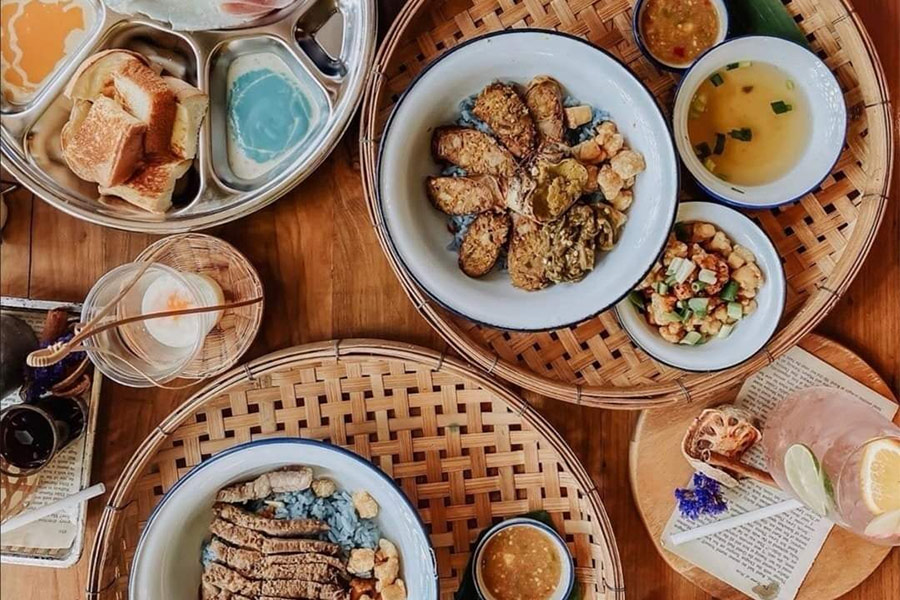 เอาใจคนตื่นเช้ากันต่อกับ เก้าคาเฟ่ นิมมาน ที่เป็นคาเฟ่อาหารเช้าสไตล์ไทยฟิวชั่นตั้งอยู่ที่ถนนนิมมานเหมินทร์ซอย 7 ตัวร้านด้านนอกตกแต่งอย่างมีเอกลักษณ์ด้วยไม้ไผ่สานเก๋ๆ ภายในร้านตกแต่งด้วยเครื่องจักรสานสไตล์ไทยๆ ผสมผสานกับความเป็นล้านนาสมัยใหม่ได้อย่างลงตัว สำหรับเมนูอาหารเช้าที่ต้องแนะนำเลยก็คือ ข้าวต้มแห้งสูตรพิเศษ เซทอาหารเช้าเสิร์ฟพร้อมขนมปังสังขยาและไข่กระทะ รสชาติต้องบอกเลยว่าอร่อยเด็ดสุดๆ นอกจากนี้ยังมีเครื่องดื่มทั้งเมนูร้อนและเย็นที่มาเติมความอร่อยให้กับมื้อเช้าได้เป็นอย่างดี