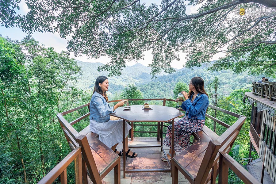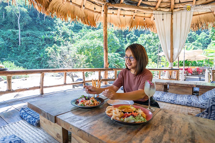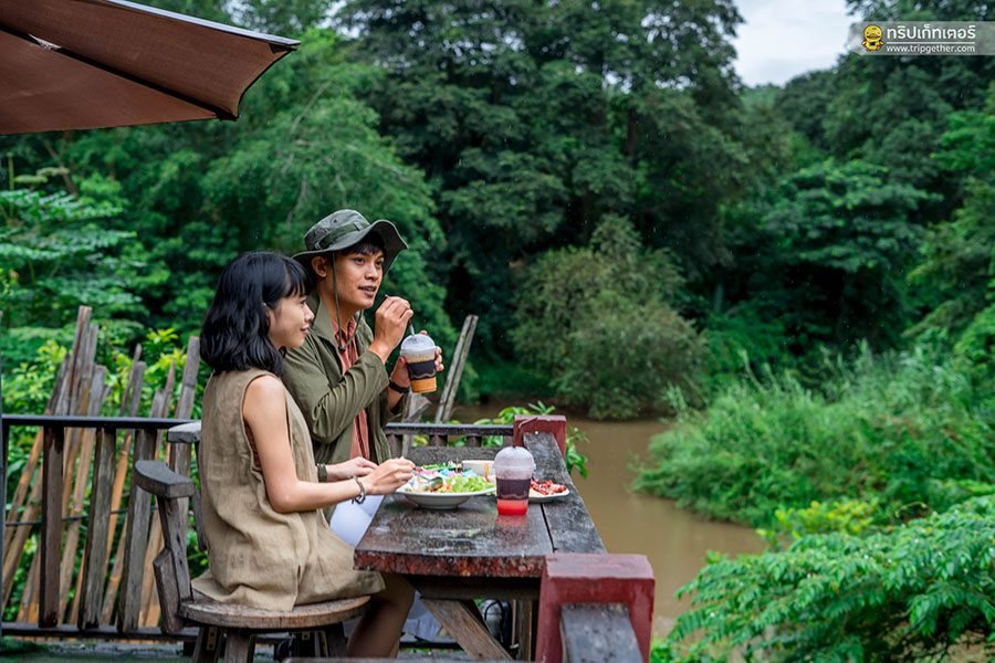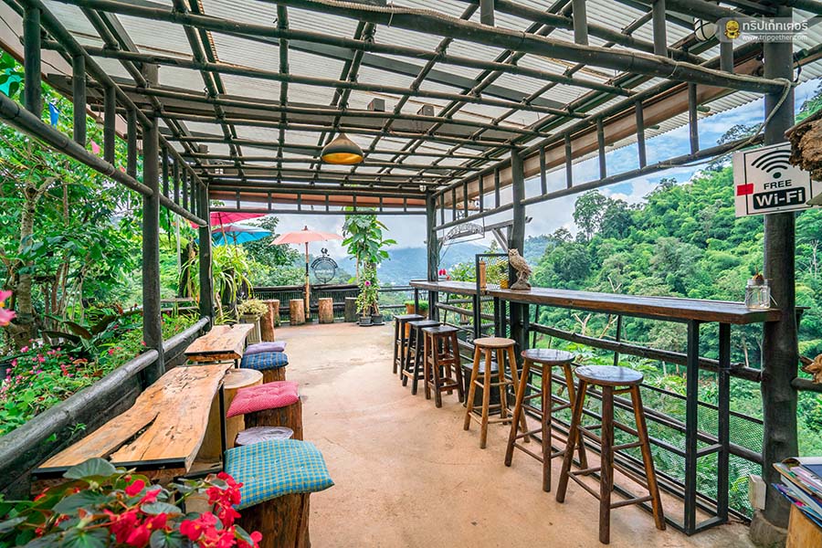 Staywild & Cafe คาเฟ่กลางขุนเขาตั้งอยู่ริมน้ำแก่งกื้ดที่น่าไปนั่งพักผ่อนท่ามกลางบรรยากาศสุดชิลล์ตกแต่งเรียบง่ายกลมกลืนกับธรรมชาติได้อารมณ์บาหลีสุดๆ ตัวร้านรายล้อมไปด้วยต้นไม้ ขุนเขา และธารน้ำที่ไม่ว่าจะนั่งโซนไหนก็ได้สัมผัสบรรยากาศสบายๆ ได้อย่างเต็มที่แน่นอน ในส่วนของเมนูอาหารที่อยากแนะนำให้ลิ้มลองกันคือ บะหมี่กะทิและส้มตำไทยที่บอกเลยว่ามาเยือนที่สเตย์ไวล์ด แอนด์ คาเฟ่แล้วต้องสั่งมาลิ้มลองให้ได้ และนอกจากวิวสวยของธรรมชาติแล้วเราก็จะได้เห็นนักท่องเที่ยวที่มาล่องแก่งผ่านไปมาให้เราเห็นเป็นอีกหนึ่งสีสันดีๆ ในการมานั่งชิลล์ที่สเตย์ไวล์ด แอนด์ คาเฟ่แห่งนี้เลยก็ว่าได้