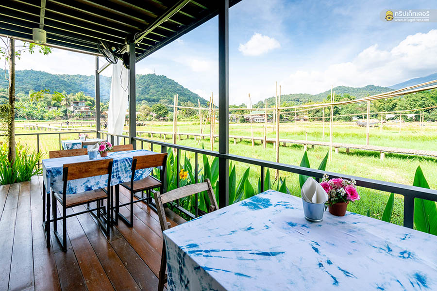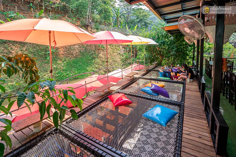 คาเฟ่สีสันสดใสตั้งอยู่เส้นสะเมิงก่อนขึ้นดอยม่อนแจ่ม ตัวร้านตกแต่งสวยงามน่ารักมาพร้อมมุมถ่ายรูปหลากหลายรับรองถูกใจคนชอบถ่ายรูปแน่นอน ร้านอยู่ติดริมน้ำมีพื้นที่ให้นั่งสบายๆ รับลมเย็นฟังเสียงธารน้ำไหลเพลินๆ อีกทั้งยังมีสะพานแขวนให้ขึ้นไปถ่ายรูปสวยๆ พร้อมวิวขุนเขาและต้นไม้น้อยใหญ่ ภายในตัวร้านตกแต่งสวยงามด้วยเฟอร์นิเจอร์ไม้โทนสีเข้มมีโซนให้เลือกนั่งทั้งอินดอร์และเอ้าท์ดอร์นั่งชมวิวสวย ในส่วนของเมนูอาหารมีทั้งคาวหวานอย่าง ข้าวเหนียวมะม่วง ชา กาแฟ และอีกหลายเมนูให้ลิ้มลองมากมาย