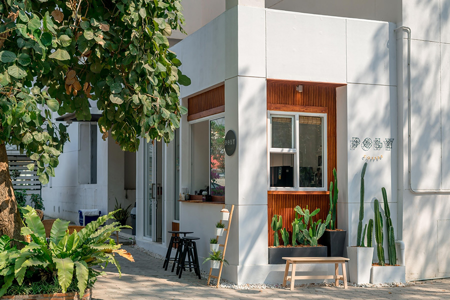 Poly Coffee คาเฟ่เล็กเปิดใหม่ ตั้งอยู่ตรงมุมตึก Uniserve ตัวร้านเล็กๆ ตกแต่งสไตล์มินิมอล เน้นสีขาวละมุน แทรกด้วยสีน้ำตาลของงานไม้ได้อย่างน่ารัก ภายใต้ร่มเงาไม้ แถมยังมีมุมน่ารักๆ ให้ถ่ายรูปเพียบ เช่น ต้นกระบองเพชร มุมยอดฮิตของสายฮิป ที่เมื่อเห็นแล้วเป็นต้องวิ่งเข้าใส่ สำหรับเมนูของที่นี่ก็มีให้เลือกหลากหลายทั้งเครื่องดื่ม ชา กาแฟ น้ำผลไม้ และขนมที่จะมาเติมความหวานและความสดชื่นให้กับคุณ ใครที่ชื่นชอบความมินิมอล หรืออยากมาแชะภาพ แวะมาตรงมุมตึก Uniserve มาพักผ่อนใต้ร่มเงาไม้ที่ Poly Coffee กัน