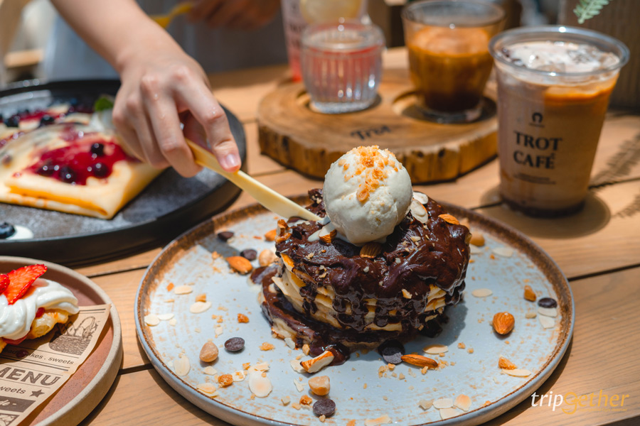 Trot Cafe Khaoyai คาเฟ่เขาใหญ่บนพื้นที่อันกว้างขวางที่ถูกโอบล้อมไปด้วยธรรชาติและความเขียวขจี อยู่ในพื้นที่เดียวกับ Rancho Charnvee Resort & Country Club มาในชื่อสุดชิคเพราะคำว่า Trot นั่นหมายถึง วิ่งเหยาะๆ ….ไม่ช้า…แต่ก็ไม่รีบ เหมาะสำหรับคนที่กำลังมองหาคาเฟ่อันแสนสงบเพื่อมานั่งชิลล์ ใช้เวลาช้าๆ จิบกาแฟ กินเบเกอรี่ มองวิวธรรมชาติ หรือใครเป็นสายกิจกรรมที่คาเฟ่ก็มีให้ทำมากมายไม่ว่าจะชมคอกม้า ขี่ม้าจูง ปั่นจักรยาน ขับรถเอทีวี ขับรถไฟฟ้าคลาสสิก บอกเลยว่าที่นี่เป็นทั้งคาเฟ่และที่เที่ยวที่สามารถมาได้ทั้งครอบครัว หรือจะเป็นกลุ่มเพื่อน คู่รัก ก็สามารถมาเช็คอินถ่ายรูปได้เช่นกัน เพราะที่นี่มีมุมให้กดชัตเตอร์กันได้แบบรัวๆ เลย