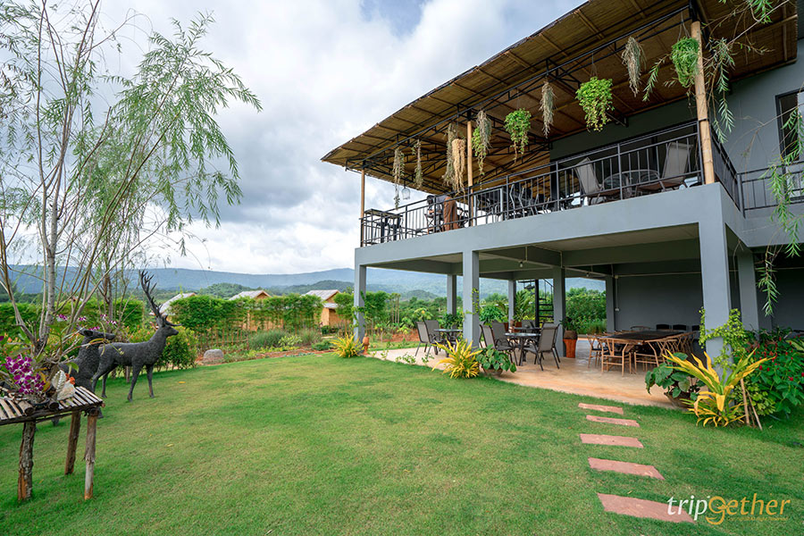 บ้านสวนไผ่นพเก้า ที่พักสไตล์บ้านไม้ไผ่ที่มาพร้อมกับคาเฟ่และร้านอาหารในสวนไม้ไผ่สุดชิค ตัวร้านเป็นสองชั้นแบบ Open Air เปิดโล่งรับลมเย็นๆ วัสดุที่ใช้ตกแต่งภายในร้านส่วนใหญ่จะไม้ ตามคอนเซ็ปต์ดีไซน์แนวธรรมชาติ ให้บรรยากาศอบอุ่นเหมือนอยู่บ้าน ใครอยากมองเห็นวิวภูเขาแบบเต็มๆ ตา แนะนำเป็นที่นั่งชั้นสอง บอกเลยว่าปัง อาหารเมนูที่เสิร์ฟมีทั้งกาแฟสด เครื่องดื่ม และขนมโฮมเมด อย่างเช่น ครัวซองต์ ที่ทำสดๆ กันแบบวันต่อวัน