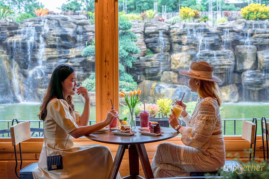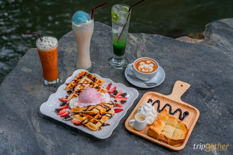 ต้นน้ำคาเฟ่ คาเฟ่เขาใหญ่ที่มีโลเคชั่นปังสุด เพราะตั้งอยู่ริมน้ำตก บรรยากาศร่มรื่นเพราะล้อมรอบด้วยต้นไม้สีเขียวมากมาย อากาศเย็นสบาย มีโซนที่นั่งตามมุมต่างๆ ในสวน สามารถถ่ายรูปสวยๆ เก๋ๆ ได้หลายมุม และไฮไลท์ของร้านก็คือ ที่นี่สามารถลงเล่นน้ำได้ด้วย กินของอร่อยพลาง เล่นน้ำตกเย็นๆ พลาง ดีต่อใจสุดๆ ในส่วนของเมนูก็มีให้เลือกทั้งของคาว ของหวาน และเครื่องดื่มแบบจัดเต็ม รับรองว่าอิ่มอร่อยทั้งมื้อได้ที่นี่ที่เดียวเลย