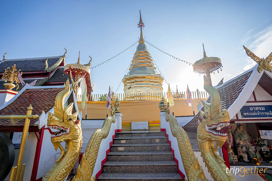 วัดพระธาตุดอยสุเทพ เป็นวัดคู่บ้านคู่เมืองของเชียงใหม่ ถ้านึกถึงวัดในเชียงใหม่ก็คงจะไม่พ้นวัดพระธาตุดอยสุเทพแน่นอน ทั้งความสวยงามขององค์พระธาตุสีเหลืองทองที่เป็นศิลปะแบบล้านนาซึ่งภายในบรรจุพระบรมสารีริกธาตุขององค์พระสัมมาสัมพุทธเจ้าที่ไม่ว่าคนเชียงใหม่หรือนักท่องเที่ยวก็จะต้องแวะมาสักการะเพื่อเป็นสิริมงคลแก่ชีวิต และที่นี่ยังมีจุดชมวิวที่สามารถมองเห็นเมืองเชียงใหม่แบบ 360 องศาอีกด้วย