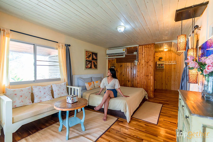 บ้านชาวเกาะ รีสอร์ท ที่พักมีเอกลักษณ์ที่โดดเด่นด้วยบ้านไม้สีขาวและความเขียวขจีของต้นไม้โดยรอบบริเวณที่พักที่ให้ความร่มเงา ส่วนของห้องพักตกแต่งในสไตล์ลอฟท์ผสมกับเฟอร์นิเจอร์และของตกแต่งที่ใช้ไม้เป็นหลัก ภายในมีสิ่งอำนวยความสะดวกครบทั้งแอร์ เครื่องทำน้ำอุ่น ทีวี ตู้เย็น ซึ่งห้องพักมีให้เลือกทั้งห้องแบบ 2 คน และห้อง Family ที่พักได้ 4 คน และที่ขาดไม่ได้ขอบอกเลยว่าอาหารเช้าที่นี่จัดมาอย่างสวยงามในแบบ American Breakfast คนตื่นเช้าห้ามพลาดเด็ดขาด