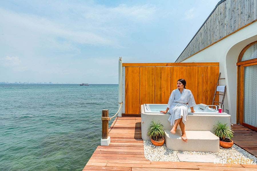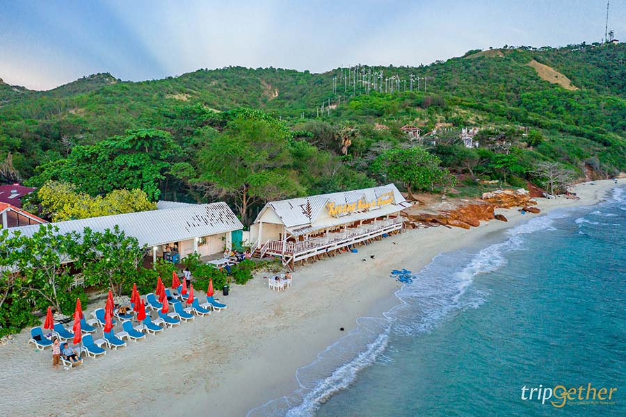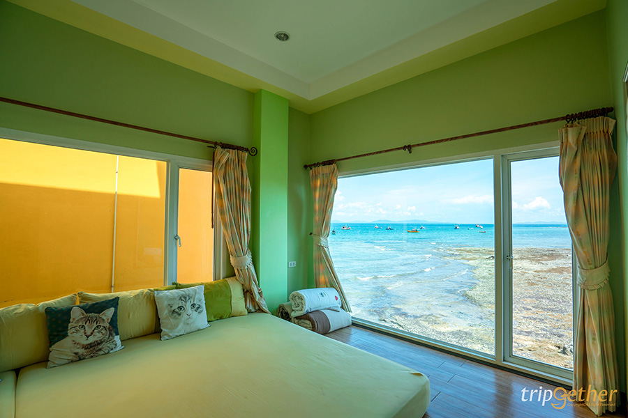 บ้านริมน้ำ เกาะล้าน ที่พักติดทะเล เดินทางสะดวกเพราะอยู่ห่างจากท่าหน้าบ้านที่เป็นท่าเรือหลักของเกาะล้านเพียงไม่ถึง 5 นาทีเท่านั้น ที่พักเป็นสไตล์บังกะโลแบบสบายๆ ในส่วนของห้องพักมีทั้งห้องริมน้ำ Sea View ห้องริมน้ำ Family ห้องริมน้ำ Pano View ห้องริมน้ำ Rooftop และห้องริมน้ำสำหรับ 3 คน ส่วนของห้องพักไฮไลท์ขอแนะนำห้องเบอร์ 8 ห้องพักริมน้ำ Pano view ที่ยื่นไปในทะเล มาพร้อมวิวพาโนราม่าที่ดีที่สุด แถมยังมีเปลตรงระเบียงให้นอนฟังเสียงคลื่นได้ตลอดทั้งวัน ที่สำคัญห้องนี้ในยามเช้าก็สามารถนั่งมองพระอาทิตย์ขึ้นได้จากบนเตียงอีกด้วย ใครที่ชอบบรรยากาศส่วนตัวและเงียบสงบต้องมาเช็คอินที่ห้องนี้รับรองไม่ผิดหวัง