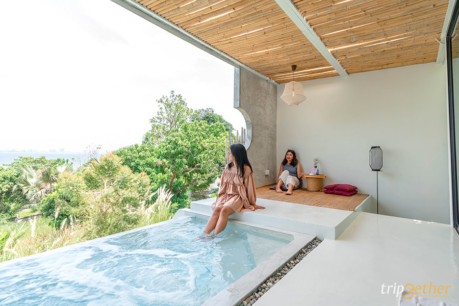 Myth Koh Larn Resort Bar And Bistro ที่พักสไตล์โมเดิร์นลอฟท์สุดไพรเวทบนเนินเขาที่สามารถมองเห็นวิวทะเลได้แบบพาโนราม่า ความพิเศษคือที่นี่มีห้องพักเพียง 3 ห้องเท่านั้น ซึ่งทุกห้องมาพร้อมสระว่ายน้ำ วิวทะเล และวิวเมืองพัทยา ภายในห้องพักเน้นใช้โทนสีขาวที่ทำให้ดูสบายตาซึ่งตัดกับเฟอร์นิเจอร์ไม้ และผสมผสานกับผนังลอฟท์ได้อย่างลงตัว ไม่เท่านั้นภายในห้องยังมีมุมให้กดชัตเตอร์ถ่ายรูปเพียบ ไม่ว่าจะมุมที่นั่งริมสระว่ายน้ำ มุมสระว่ายน้ำ มุมอาบน้ำแบบเอาท์ดอร์ บอกเลยว่าใครชอบอัปรูปลงโซเชียลจะต้องเลิฟ เพราะไม่ใช่แค่ภายในห้องพักแต่บริเวณที่พักรวมไปถึงโซนร้านอาหารและบาร์ที่ออกแบบตามแนวคิด The place of secret ที่เปิดให้บริการในช่วงเย็นก็สวยจนอดไม่ได้ที่จะยกกล้องขึ้นมาถ่ายรูปกันรัวๆ แน่นอน