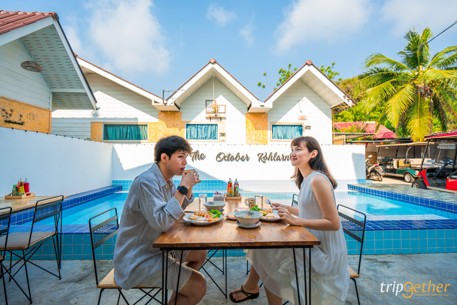 The October ที่พักโลเคชั่นแจ่มใกล้ท่าหน้าบ้าน อยู่ในจุดที่มีทั้งร้านอาหารและคาเฟ่มากมาย ที่พักมาพร้อมกับสระว่ายน้ำส่วนกลางเพื่อให้คุณได้เพลิดเพลินกับการเล่นน้ำในสระ ส่วนของห้องพักมีตั้งแต่ห้องพักสำหรับ 2 คน ไปจนถึงห้องพักที่สามารถรองรับกลุ่มเพื่อนหรือครอบครัวใหญ่ได้ถึง 10 คน ความพิเศษของที่ The October คือทุกห้องเป็นราคารวมค่ามอเตอร์ไซค์น้ำมันเต็มถังแล้วให้ผู้เข้าพักสามารถไปในสถานที่ต่างๆ ภายในเกาะล้านได้อย่างสะดวกสบาย สำหรับหาดที่อยู่ใกล้ที่พักก็คือ หาดตายาย หาดทองหลาง หาดตาแหวน ใช้เวลาเดินทางเพียง 10 นาทีเท่านั้น