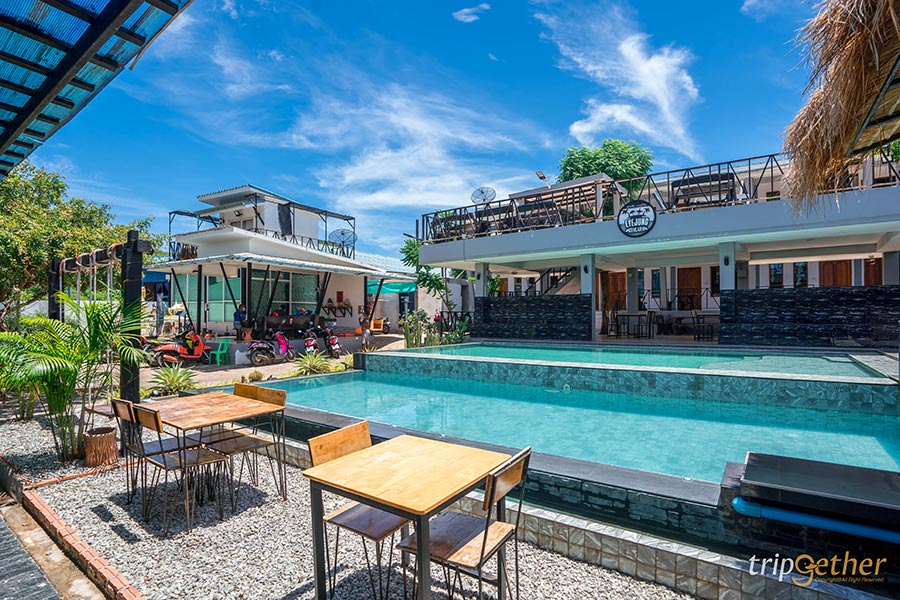 บ้านมะกรูด ที่พักชิคๆ ใกล้ท่าหน้าบ้าน เดินเพียงแค่ 5 นาทีเท่านั้น อีกทั้งยังใกล้กับแหล่งของกินมากมาย หรือจะเดินไปเล่นน้ำที่ชายหาดยังได้เลย โดยที่พักห่างจากหาดตายายแค่ 500 เมตร และห่างจากหาดตาแหวนแค่ 1.5 กิโลเมตร ส่วนที่พักดีไซน์ออกมาได้เก๋มากๆ ด้วยสไตล์ลอฟท์ ผนังปูนเปลือย ดูเท่ไม่ซ้ำใคร ส่วนห้องพักมีให้เลือก 2 แบบ คือ ห้องสำหรับ 2 คนและห้องสำหรับ 4 คน การตกแต่งยังคงเน้นสีเรียบๆ โทนขาว ดำ และเทา บรรยากาศสบายๆ เหมาะแก่การมาพักชิลล์ๆ นอกจากนี้ยังมีพื้นที่ส่วนกลาง อย่างสระว่ายน้ำ มุมพักผ่อนสำหรับนั่งเล่น และชั้นดาดฟ้าที่สามารถขึ้นไปนั่งเล่น รับลมสบายๆ หรือจะซื้อของกินเล่นจุกจิกมานั่งกินกับเพื่อน บอกเลยว่าฟีลดีสุดๆ