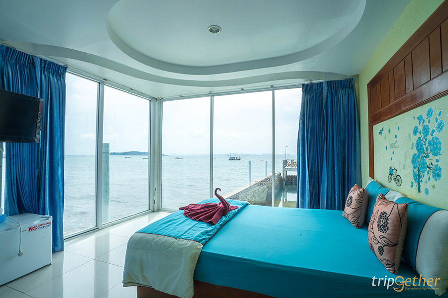 บ้านทะเลสวย ที่พักยื่นลงทะเลที่คุณสามารถมองเห็นน้ำทะเลใสๆ และฝูงปลาแหวกว่ายได้จากที่พัก ไม่เพียงแต่วิวทะเลที่สวยงามที่ตั้งของบ้านทะเลสวยยังอยู่ในโลเคชั่นที่เดินทางสะดวกเพราะอยู่ห่างจากท่าหน้าบ้านเพียง 5 นาทีเท่านั้น ทำให้คุณสามารถเดินทางไปที่ต่างๆ ไม่ว่าจะชายหาด ร้านอาหาร หรือคาเฟ่ ได้ไม่ยาก ส่วนของห้องพักมีให้เลือกทั้งห้องพักแบบ 2 – 4 คน ภายในห้องพักยังตกแต่งไว้อย่างสวยงามน่านอน พร้อมสิ่งอำนวยความสะดวกครบ ที่บ้านทะเลสวยยังมีส่วนกลางที่มีโต๊ะเก้าอี้ให้นั่งชิลล์ๆ มองวิวทะเลและวิวเมืองพัทยายามค่ำคืน หรือใครเป็นสายตื่นเช้าจากที่พักสามารถชมพระอาทิตย์ขึ้นได้อีกด้วย
