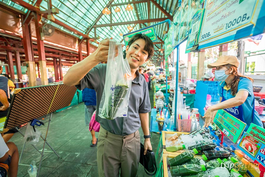 แวะซื้อน้ำก่อนไปรอรถบัสไฟฟ้าเพื่อไปกันต่อที่ตลาดน้ำคลองลัดมะยม