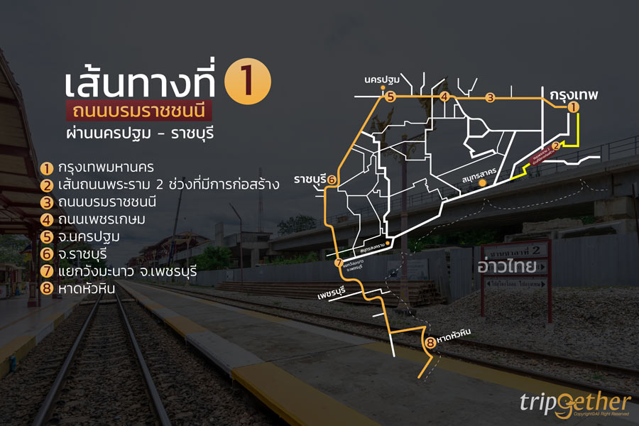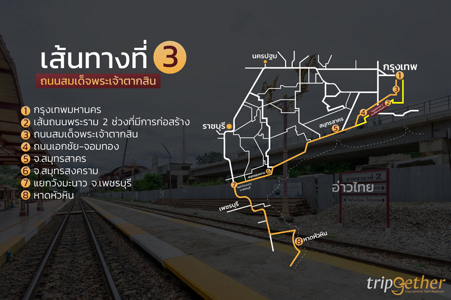 ถนนพระราม 2 เป็นถนนสายหลักจากกรุงเทพมหานครที่มุ่งหน้าสู่ภาคใต้และที่เที่ยวสุดฮิตอย่าง หาดหัวหิน เป็นที่ทราบกันดีว่าถนนเส้นนี้ต้องเจอกับปัญหาซ่อมแซมและปรับปรุงถนนและการก่อสร้างอย่างต่อเนื่อง ทำให้ต้องเจอกับปัญหารถติดสาหัส วันนี้ทริปเก็ทเตอร์จะมาแนะนำ 4 เส้นทาง ไปหัวหินไม่ผ่านพระราม 2 เที่ยวสนุกไม่มีสะดุด จดลิสต์แล้วปักหมุดตามไปกันได้เลย