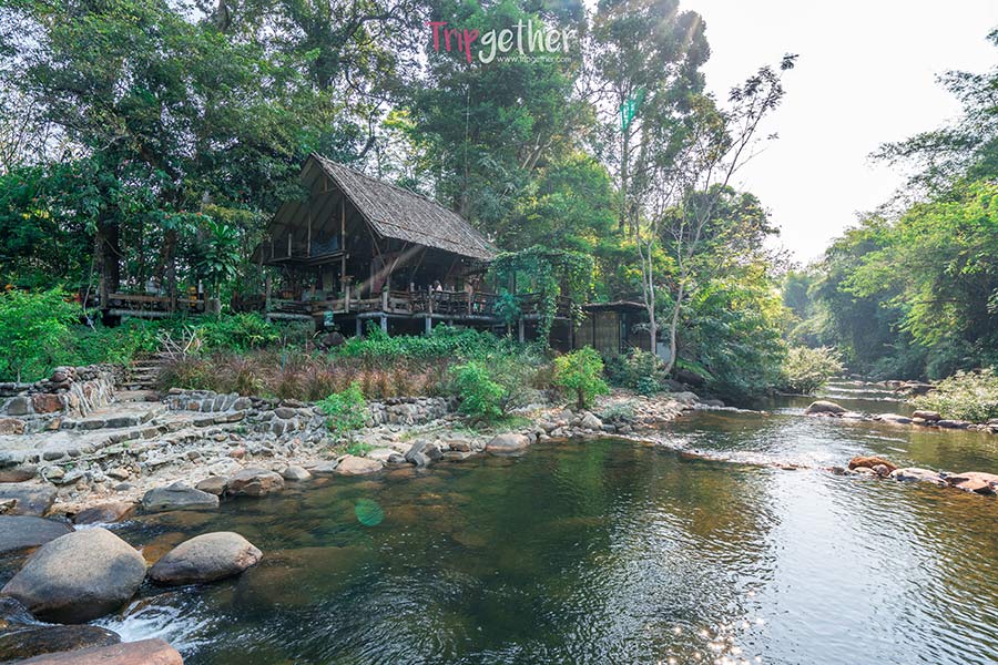บ้านป่าริมธารโฮมสเตย์ บ้านพักสไตล์โมเดิร์ทคอทเทจ บรรยากาศดีที่ร่มรื่นไปด้วยต้นไม้ใหญ่ อีกทั้งที่นี่ยังออกแบบบ้านพักและพื้นที่ส่วนกลางได้อย่างลงตัว มีสะพานข้ามลำธารที่คุณสามารถโพสต์ท่าถ่ายรูปได้หลายมุม มีลำธารติดที่พักที่คุณสามารถลงเล่นได้ทุกเมื่อ นอกจากนี้ยังมีอาหารพร้อมเสริฟความอร่อยอีก 2 มื้อให้คุณได้อิ่มแปร่ตลอดการเข้าพักที่นี่อีกด้วย