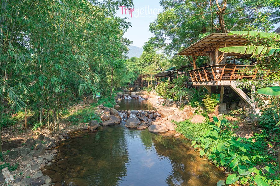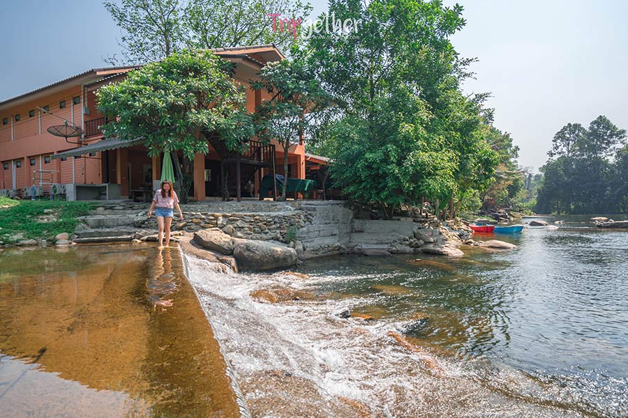 บ้านสวนริมน้ำโฮมสเตย์ ที่พักบรรยากาศบ้านๆ ตั้งอยู่ริมธารน้ำตกที่มีน้ำไหลเย็น สามารถลงเล่นได้ตลอดทั้งปี บ้านพักของที่นี่จะมีให้เลือกทั้งแบบมาคู่และมาเป็นกลุ่ม บ้านพักแต่ละหลังออกแบบและตกแต่งในสตไล์เรียบง่าย เรียงรายอยู่ริมลำธารและใต้ร่มไม้ ส่วนภายในที่พักก็มีสิ่งอำนวยความสะดวกที่ครบครันทั้งแอร์ ทีวี และห้องน้ำในตัว (แต่บ้างห้องไม่มีเครื่องทำน้ำอุ่น) นอกจากนี้ยังมีอาหารเย็นและเช้าให้บริการรวมกับแพ็คเกจห้องพักอีกด้วย