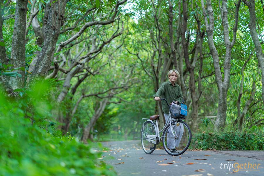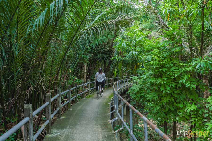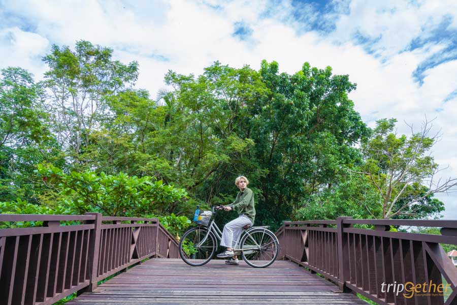 เริ่มเช็คลิสต์แรก กิจกรรมที่ต้องทำเมื่อไปเที่ยวบางกะเจ้า ก็คือ การปั่นจักรยาน เที่ยวรอบหมู่บ้าน ชมวิธีชีวิตชุมชน และเส้นทางธรรมชาติไปตามพื้นที่สีเขียว ถือเป็นกิจกรรมยอดฮิตที่เราเห็นกันอยู่บ่อยๆ ผ่านตามหน้าสื่อหรือรีวิวต่างๆ เรียกได้ว่าเป็นไฮไลท์ที่ใครมาบางกะเจ้าก็ต้องเช่าจักรยานมาปั่นไปเช็คอินตามจุดต่างๆ แถมยังได้ออกกำลังกายไปในตัวอีกด้วยนะ โดยการเช่าจักรยานก็มีให้เช่าแบบเป็นรายวัน หรือบางที่พักก็จะมีจักรยานไว้ให้ใช้บริการ สำหรับเส้นทางปั่นจักรยานภายในบางกะเจ้านั้นจะมีโซนที่ร่มรื่น อย่าง โซนป่าชายเลน โซนหมู่บ้าน ปั่นกินลมชมวิวชิล์ลๆ ได้สบายๆ ในส่วนของบริเวณถนนใหญ่ที่มีรถยนต์วิ่งด้วยแดดค่อนข้างแรง แนะนำให้ทาครีมกันแดด และใส่เสื้อแขนยาว รวมถึงปั่นจักรยานด้วยความกันระมัดระวังกันด้วยนะ