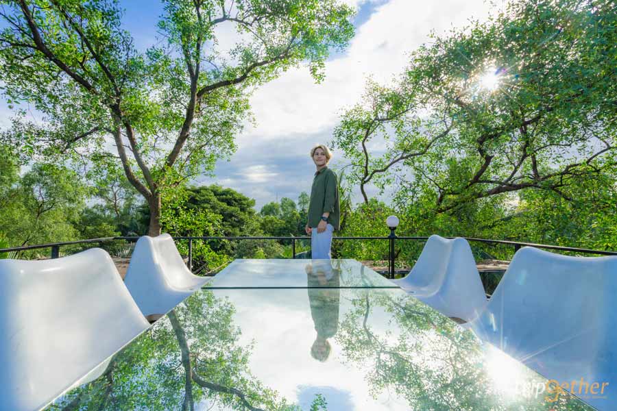 ปั่นจักรยานมานั่งชิลล์ ที่ Bangkok Tree House ห้องพักบ้านต้นไม้ ริมแม่น้ำสุดชิลล์ และคาเฟ่สุดชิค ที่นี่ถือเป็นแลนด์มาร์กที่ต้องมาเช็คอิน และเป็น กิจกรรมที่ต้องทำเมื่อไปเที่ยวบางกะเจ้า ที่ต้องมา เช็คลิสต์ ตัวร้านตกแต่งสไตล์โมเดิร์นอีโค อิงความเป็นธรรมชาติแวดล้อมด้วยต้นไม้น้อยใหญ่มีความร่มรื่น ซ่อนตัวอยู่ท่ามกลางป่าชายเลนติดริมแม่น้ำเจ้าพระยา โซนร้านอาหารและคาเฟ่นั้นเน้นเสิร์ฟอาหารออร์แกนิค ที่มาพร้อมเมนูอาหาร ของหวาน และเมนูเครื่องดื่มเย็นๆ ให้เติมความสดชื่นมากมาย มีมุมถ่ายรูปไฮไลท์อยู่ที่ชั้น rooftop ของร้านที่สามารถชมวิวแม่น้ำได้เต็มๆ ถ่ายรูปสวยมาก