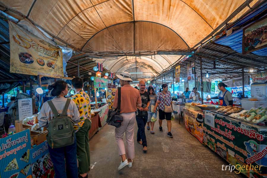 มาถึงที่นี่ทั้งที ต้องไม่พลาด ช้อปปิ้งของฝาก ชิมขนมโบราณ เดินเล่นเสพบรรยากาศ ตลาดน้ำบางผึ้ง ตลาดแห่งนี้ถือเป็นแหล่งท่องเที่ยวที่อยู่ใกล้กรุงเทพมากๆ เลยทีเดียว เหมาะที่จะพาครอบครัว หรือมาเที่ยวแบบกลุ่มเพื่อนในวันหยุดพักผ่อนมาสัมผัสวิถีชีวิตแบบดั้งเดิม ภายในตลาดมีร้านค้า ของขายมากมาย ไม่ว่าจะเป็น ขนมโบราณประจำท้องถิ่น ของกินของใช้ และของพื้นบ้านสุดขึ้นชื่อประจำจังหวัด ถูกใจสายช้อปสายชิมแน่นอน โดยตลาดน้ำบางน้ำผึ้งแห่งนี้ เปิดบริการเฉพาะวันเสาร์ – อาทิตย์เท่านั้น