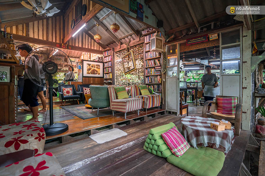 คาเฟ่ชิคๆ ในอ.ศรีราชาที่มาพร้อมธารน้ำไหลให้ไปนั่งจิบกาแฟกินขนมอร่อยๆ กลางสายน้ำ ตัวร้านตกแต่งสไตล์ไทยๆ ผสมผสานความเป็นวินเทจนิดๆ เข้ากันได้ดีกับตัวร้านที่เน้นงานไม้เป็นแบบโอเพ่นแอร์สามารถนั่งรับลมเย็นๆ จากธรรมชาติได้ มีโซนให้เลือกนั่ง 3 โซนคือ โซนในตัวร้านเป็นทั้งจุดสั่งอาหาร เครื่องดื่มต่างๆ และยังจักสรรพื้นที่ให้นั่งชิลล์อีกด้วย ต่อมาเป็นโซนใต้ร่มไม้สุดร่มรื่นมาพร้อมบรรยากาศสบายๆ และสุดท้ายเป็นโซนไฮไลท์ของร้านนี้เลยคือ โซนลำธารที่สามารถลงมานั่งจุ่มเท้าบนธารน้ำไหลเย็นสบายและผ่อนคลายสุดๆ เมนูที่น่าลิ้มลองก็มีทั้งชาเขียวเย็น อเมริกาโน่เย็น น้ำแดงโซดาปั่น เค้กเรดเวลเวท และเมนูทานเล่นอย่างไส้กรอกทอด หากวันหยุดนี้ใครกำลังมองหาร้านน่านั่งบรรยากาศสบายๆ ก็แวะมาเที่ยวกันที่ บางพระเรือ ณ ห้วยท่าไทร