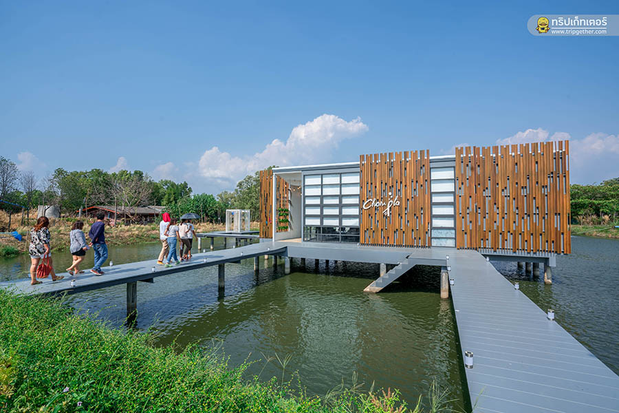 Chompla cafe คาเฟ่ในจันทบุรีที่ล้อมรอบไปด้วยน้ำและปลาคาร์ปนับ 10,000 ตัว เรียกว่าเห็นปลากันตั้งแต่ทางเข้าเลย จะเดินจะนั่งมุมไหนก็สามารถชมปลาได้อย่างชัดเจน ตัวร้านตกแต่งสไตล์โมเดิร์น เน้นใช้กระจกเป็นหลัก เสริมด้วยระแนงไม้เพิ่มความเป็นธรรมชาติ และเพราะตัวร้านเป็นกระจกนี้เอง ลูกค้าที่นั่งภายในร้านจึงสามารถมองเห็นปลาได้อย่างชัดเจนไม่แพ้ด้านนอก ส่วนเครื่องดื่มและขนมก็มีหลากหลายให้เลือกทาน โฮจิชะลาเต้ก็ดี วาฟเฟิ้ลกล้วยตากก็อร่อย กินไปชมปลาไป นั่งกันเพลินยาวๆ ไปเลยอิ่มท้องอิ่มบรรยากาศกันแล้ว ใครอยากให้อาหารน้องปลาก็ให้กันได้นะจ๊ะ