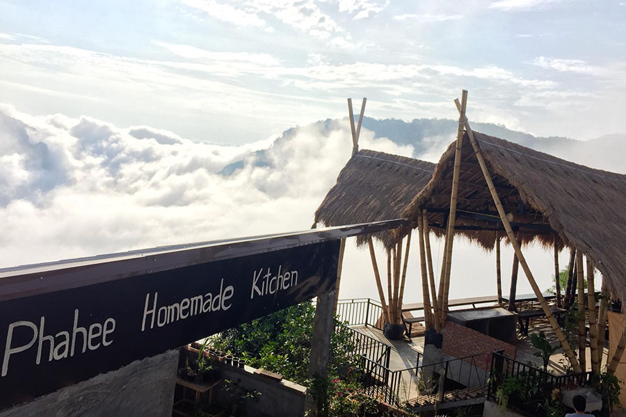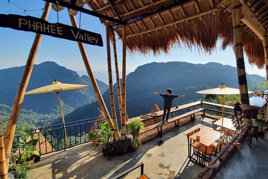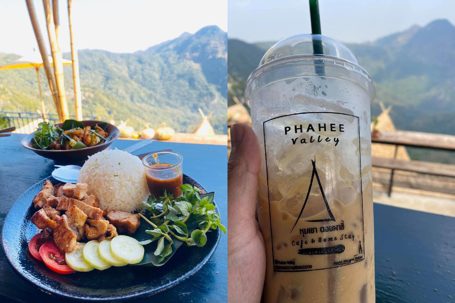 ผาฮี้ วัลเล่ย์ คาเฟ่และโฮมสเตย์ ของหมู่บ้านผาฮี้ ตัวคาเฟ่ตกแต่งออกแนวบาหลีด้วยหลังคามุงจาก เป็นร้านเล็กๆ แต่เห็นวิวได้สวยอลังการไม่แพ้ที่ไหนๆ ในส่วนของเมนู ที่นี่ไม่ได้มีแค่กาแฟนะ มีทั้งอาหารหลากหลายสไตล์ ทั้งอาหารจานเดียว พิซซ่า และสลัด (อาจจะมีแค่บางวัน) เป็นอีกหนึ่งร้านที่ได้ทั้งวิวและได้กินอาหารอร่อยๆ แบบจัดเต็ม