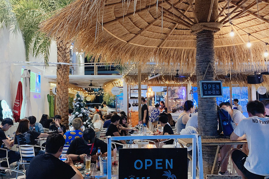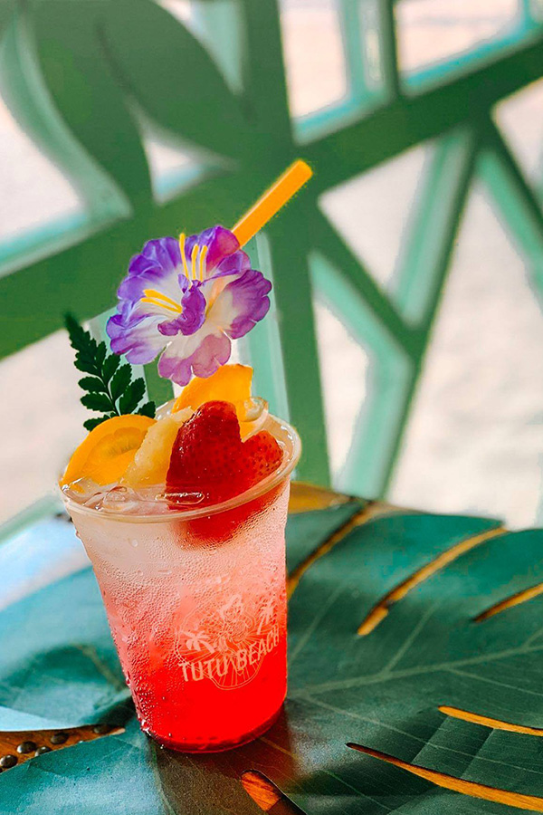 คาเฟ่ริมหาด ที่จะมาเปลี่ยนโลกของคุณให้เป็นสีชมพู Tutu Beach มาในสไตล์ฮาวาย โดดเด่นด้วยเบาะ Bean Bag พร้อมร่มสีชมพูหวานแหววกระจัดกระจายอยู่ทั่วหาด รอให้คุณนั่งจับจองรับลมริมทะเล หรือใครอยากนั่งในร่มที่นี่ก็มีโซนอินดอร์ ให้ห้องแอร์เย็นฉ่ำ ที่มีสไตล์การตกแต่งได้อย่างน่านั่งไม่แพ้กัน โดดเด่นด้วยสีเขียวสดชื่นและเฟอร์นิเจอร์สีสันสดใสให้ความรู้สึกเหมือนอยู่ในฮาวายอย่างไงอย่างงั้น สำหรับเมนูของที่โดดเด่นเลยก็คือเครื่องดื่มสุดเฟรช ทั้งน้ำผลไม้ต่างๆ ที่นำมาครีเอทได้อย่างน่าลิ้มลอง รวมถึงเบียร์และค็อกเทล อีกทั้งยังมีเบเกอรี่และอาหารพร้อมให้บริการอีกด้วย