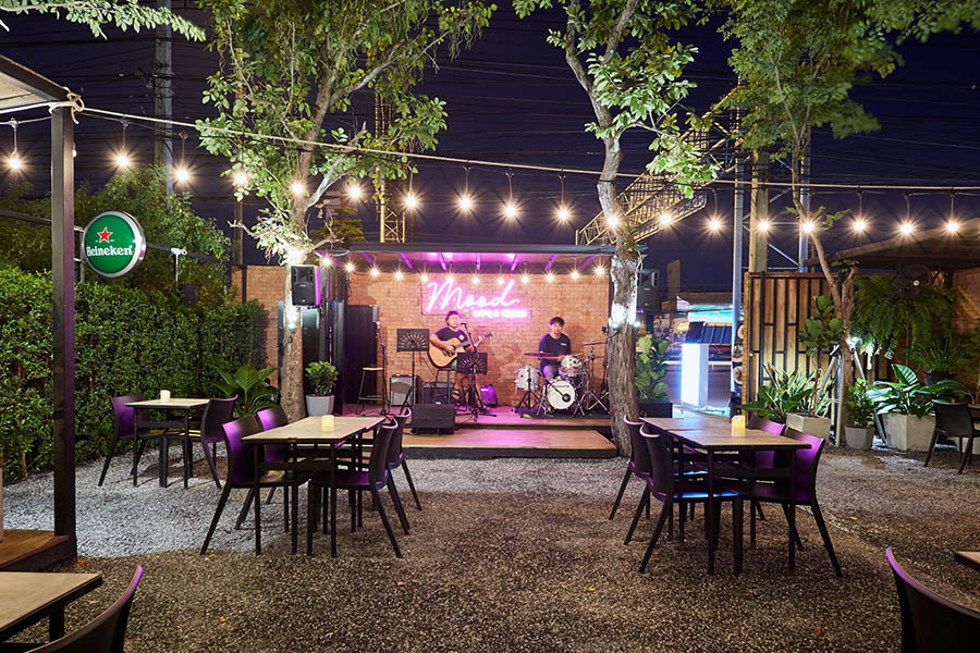 Mood Cafe & Bistro คาเฟ่และร้านอาหารเปิดใหม่ สไตล์โมเดิร์นลอฟท์ ที่จะชวนคุณมานั่งเพลินๆ ตั้งแต่เช้ายันค่ำ มีทั้งโซนที่นั่งอินดอร์และเอ้าดอร์ โดยด้านในจะเป็นโซนคาเฟ่ซึ่งมีทั้งเครื่องดื่ม ชา กาแฟ และขนมให้บริการ ส่วนด้านนอกจะเหมาะกับช่วงเวลายามเย็นถึงค่ำ สำหรับชวนเพื่อนมาแฮงค์เอ้าท์จิบเครื่องดื่มเย็นๆ ฟังดนตรีสด นอกจากนี้ยังมีบริการอาหารทั้งไทยและเทศ รวมถึงอาหารฟิวชั่นน่าลิ้มลองอีกมากมาย