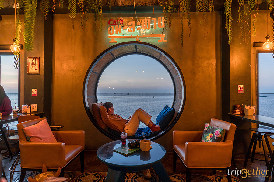 Cafe On Sapan อีกหนึ่งคาเฟ่ที่พลาดไม่ได้เช่นกัน ด้วยตัวร้านบรรยากาศสบายๆ มาเที่ยวได้แค่ที่ชลบุรีเท่านั้น เพราะตัวร้านที่อยู่บนสะพานเลียบชายทะเลชลบุรี แถมตัวร้านยังยื่นออกไปกลางทะเลด้วย ภายในร้านตกแต่งแบบเท่ๆ เลือกใช้เฟอร์นิเจอร์โทนสีเข้มเป็นหลัก มุมฮิตที่พลาดไม่ได้เลยสำหรับที่นี่คือ มุมม้านั่งที่มีหน้าต่างกระจกทรงกลมมองเห็นวิวทะเล เป็นมุมซิกเนเจอร์ของร้านที่ใครเดินทางมาเที่ยวก็ต้องแวะถ่ายรูปชิคๆ เก็บไปอัพลงโซเชียลกัน ใครที่มาช่วงเย็นๆ ก็จะได้สัมผัสกับบรรยากาศของพระอาทิตย์ตกสวยงามไม่แพ้ที่อื่นเลย แล้วก็มานั่งถ่ายรูปฟินๆ บริเวณมุมเปลตาข่ายที่ยื่นตัวออกไปในทะเลรูปสวยปังสุดๆ ใครที่ชื่นชอบการถ่ายรูปกับบรรยากาศร้านสบายๆ แบบนี้พลาดร้าน คาเฟ่ On สะพาน ไม่ได้เลย!