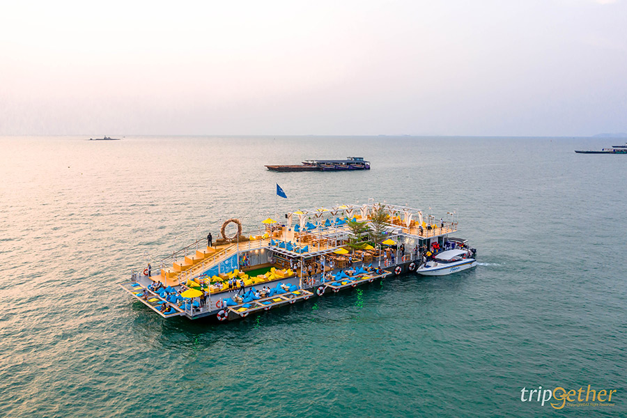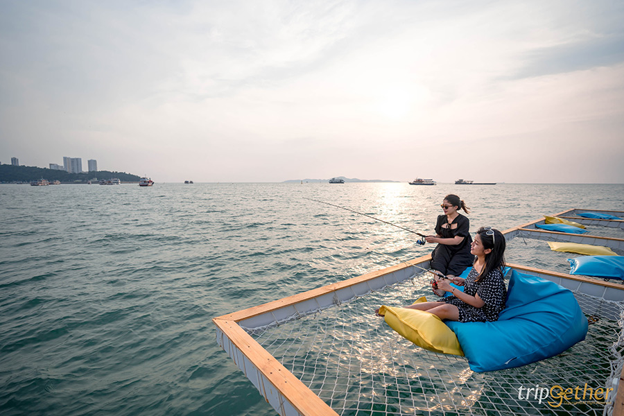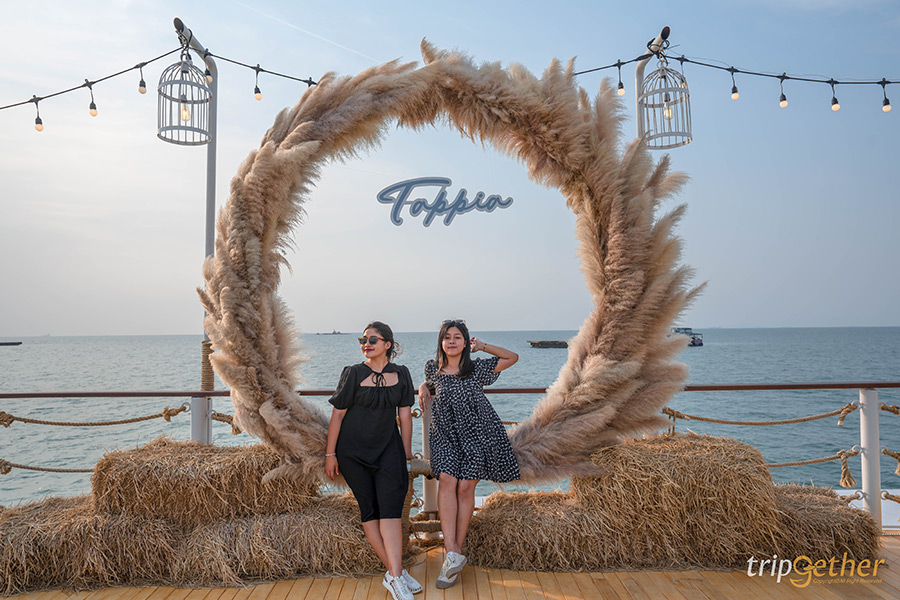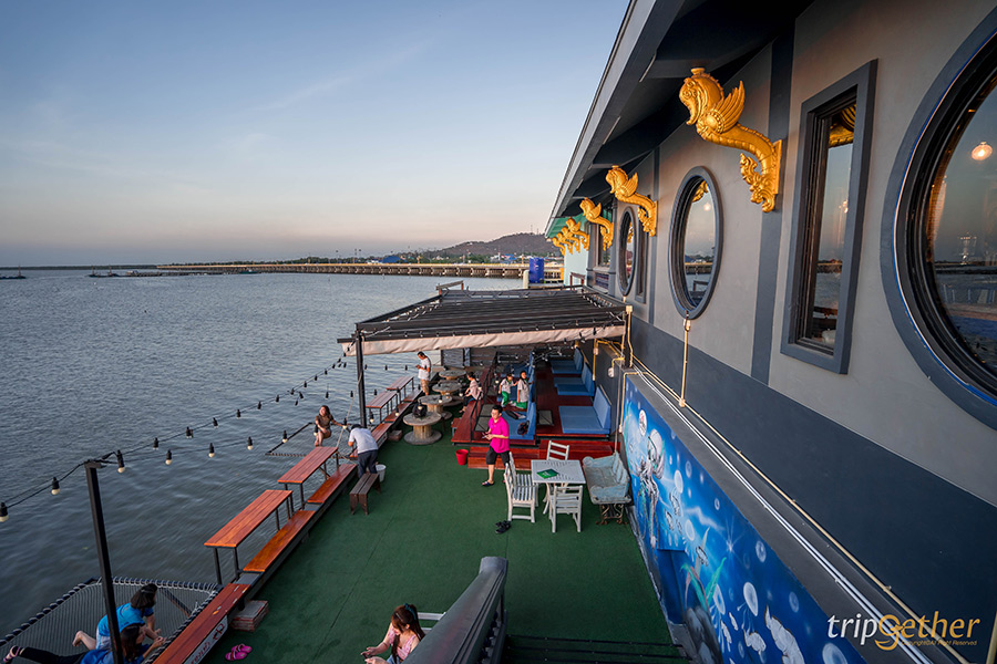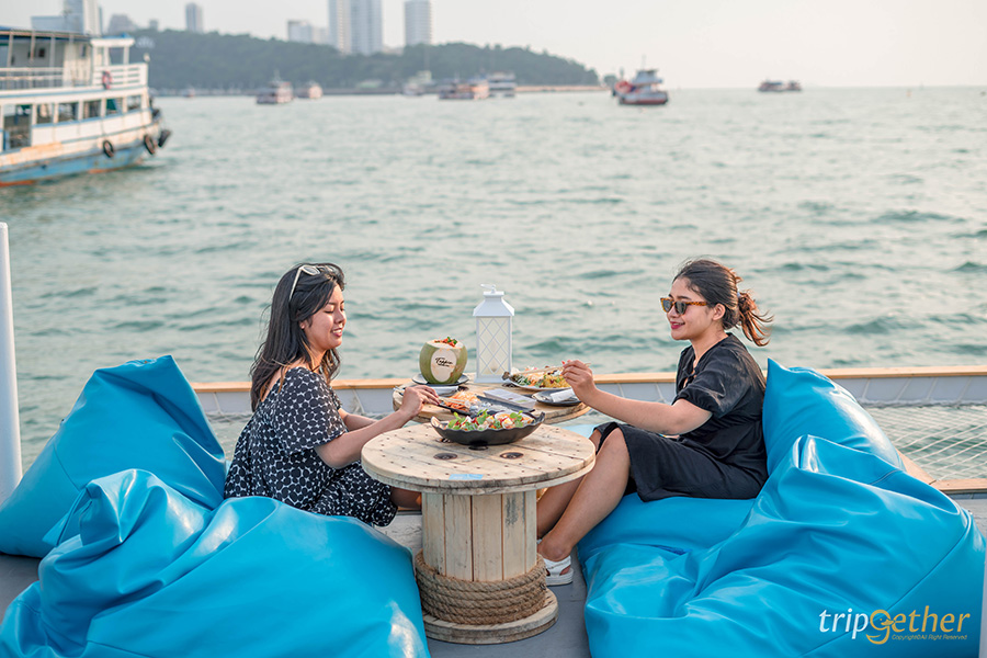 ขอเริ่มต้นที่ Tappia Floating Cafe Pattaya คาเฟ่ตกหมึกกลางทะเลที่อยู่บนเรือขนาดใหญ่กลางทะเล ซึ่งทางร้านมีเรือสปีดโบ๊ทที่ท่าเรือเร็วที่ 1 ของท่าเรือแหลมบาลีฮายรอรับ-ส่งลูกค้ามาถึงที่คาเฟ่ โดยจะมีเรือรอบ 16.00 น. บนเรือลำใหญ่ 2 ชั้นนี้เต็มไปด้วยพื้นที่พักผ่อนและมุมถ่ายรูปสวยๆ แบบจัดเต็มเลย ด้วยการตกแต่งสไตล์ทรอปิคอลบรรยากาศสุดชิคหาที่ไหนไม่ได้เลย ภายในคาเฟ่จัดพื้นที่เอาไว้อย่างดีไม่แออัด สามารถพักผ่อนได้แบบเป็นส่วนตัว พร้อมด้วยดนตรีสดที่เพลิดเพลินได้ตลอดทั้งวัน สำหรับกิจกรรมดีๆ ที่ไม่ควรพลาดคือ กิจกรรมตกหมึก ที่สามารถตกได้แบบฟรีๆ เลย ถ้าหากตกหมึกได้ก็มีบริการทำซาชิมิให้แบบสดๆ บนเรือเลย แต่สำหรับใครที่ตกไม่ได้ไม่ต้องเสียใจไปเพราะทางร้านก็มีให้สั่งมารับประทานได้เหมือนกัน และยังพร้อมเสิร์ฟเมนูอร่อยอย่าง ข้าวผัดฮาวาย, หมึกทอดกระเทียม, ต้มยำกุ้งมะพร้าวอ่อน และหมึกซาชิมิ สำหรับเมนูขนมหวานต้องลอง Lom Talay, Balihai Pier, Tappia Paradise และ ช็อกโกแลตลาวา ดีต่อใจทุกเมนูแน่นอน