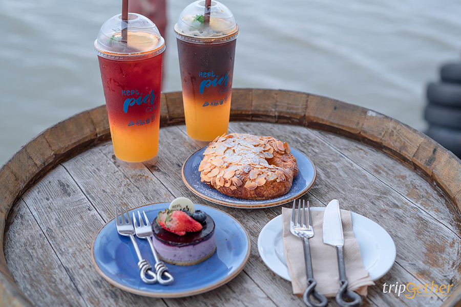 มาต่อกันที่ Kept Pier Cafe คาเฟ่กลางทะเลในพื้นที่ของโรงแรมหรูติดทะเลอย่าง เคบบางเสร่ ตัวคาเฟ่ที่ตกแต่งในสไตล์ทรอปิคอลผสมผสานสไตล์บาหลีเข้าไปได้อย่างลงตัวให้ฟีลเหมือนมานั่งอยู่ที่ท่าเทียบเรือบนหมู่เกาะมัลดีฟส์ ตัวร้านเน้นใช้โทนสีขาวตัดกับสีฟ้าทำให้เข้ากับบรรยากาศของท้องทะเลมากยิ่งขึ้น ภายในร้านมีโซนให้เลือกนั่งได้ทั้งโซนด้านในร้านและโซนเทอเรสที่ยื่นตัวออกไปเหนือทะเล สำหรับตัวร้านที่เป็น Open Air ทำให้มีลมทะเลพัดผ่านเข้ามาตลอดเวลาเย็นสบายตลอดทั้งวันอย่างแน่นอน แต่ไฮไลท์ของร้านนี้อยู่ที่มุมเปลตาข่ายที่ยื่นตัวไปเหนือน้ำบอกเลยว่าฟินมากๆ นั่งชิลล์ชมวิวพระอาทิตย์ตกไปด้วย ดื่มด่ำเมนูอาหารและเครื่องดื่มไปด้วยดีต่อใจมากก~