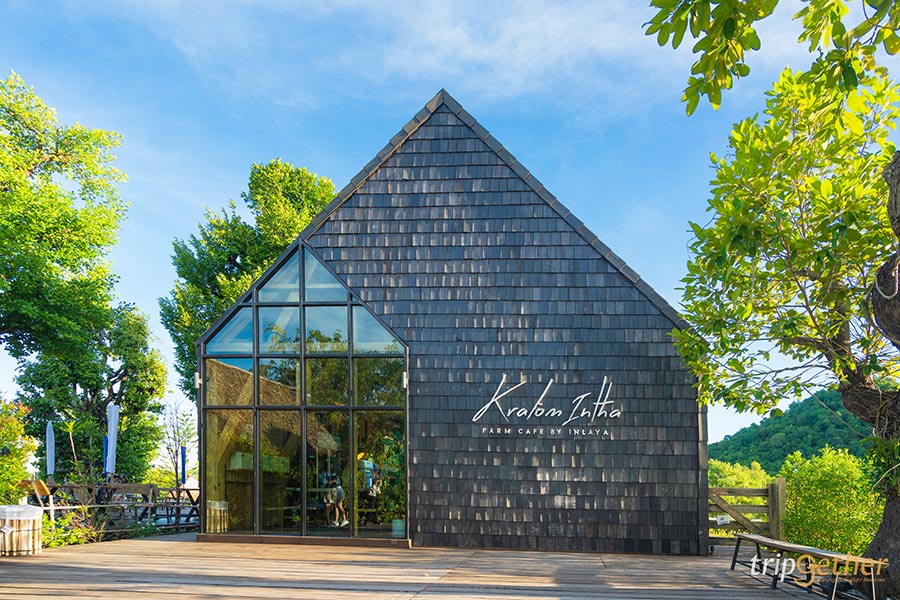 กระท่อมอินทา คาเฟ่ริมทะเลสาบในจังหวัดราชบุรี ตัวคาเฟ่มีดีไซน์เหมือนกระท่อมผสมผสานกับผนังกระจกใสบานใหญ่ที่ทำให้สามารถมองเห็นวิวสวยๆ ของท้องฟ้าที่สะท้อนกับผืนน้ำในทะเลสาบและธรรมชาติที่เขียวขจีของต้นไม้และภูเขา โซนที่นั่งก็มีให้เลือกทั้งอินดอร์และเอาท์ดอร์ ส่วนมุมถ่ายรูปบอกเลยว่าถูกใจสายคอนเทนต์สุดๆ เพราะมุมถ่ายรูปสวยๆ เยอะมาก ไฮไลท์คือมุมสะพานที่ทอดยาวไปในน้ำและด้านหลังเป็นเรือใบสีขาวสวยสุดๆ ส่วนเมนูที่มาแล้วห้ามพลาดเลยคือ Intha Melon และ Strawberry Milk นอกจากนี้ยังมีขนมอีกหลากหลายเมนูที่ต้องถูกใจคนรักของหวานแน่นอน