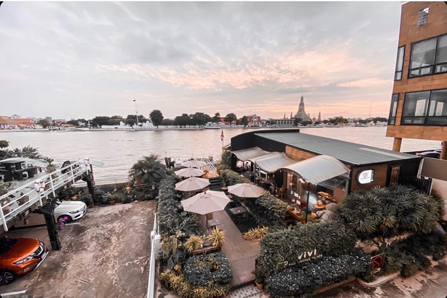 Vivi The Coffee Place ร้านกาแฟริมแม่น้ำเจ้าพระยา โลเคชั่นสุดปังเพราะตั้งอยู่ตรงข้ามวัดอรุณ ทำให้สามารถมองเห็นยอดพระปรางค์ของวัดอรุณได้อย่างชัดเจนจากตัวร้าน ทางร้านมีที่นั่งทั้งโซน indoor และ outdoor แต่อากาศดีๆ แบบนี้ก็แนะนำโซนที่นั่ง outdoor เลย โดยเฉพาะในส่วนของที่นั่งริมแม่น้ำ รับรองว่าฟินสุดๆ ทั้งบรรยากาศและวิวแม่น้ำเจ้าพระยาแบบ 180 องศา เหมาะที่จะเป็นสถานที่ไว้นั่งผ่อนคลายแบบชิลล์ๆ หรือนัดเจอพูดคุยกันกับเพื่อนก็ดีไม่เบา แถมวิวยอดพระปรางค์วัดอรุณนั้นจะสวยมากยิ่งขึ้นถ้าเป็นในช่วงเวลายามบ่ายหรือค่ำๆ ถ่ายรูปโพสต์ลงโซเชียลกันได้เก๋ๆ เลย ในส่วนของเมนู ทางร้านมีทั้งเมนู Coffee และ Non-Coffee นอกจากนี้ยังมีของหวานและของกินอื่นๆ เช่น เครปเค้ก แซนด์วิชแฮมชีส สปาเก็ตตี้ ฯลฯ