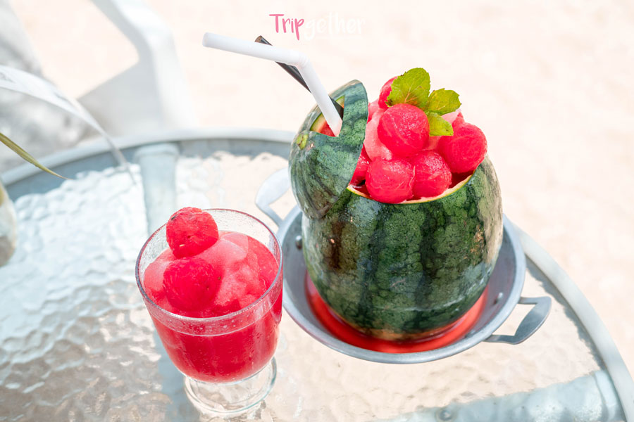 1d+ Day Artist คาเฟ่เก๋ๆ ริมทะเลติดหาดเขาเต่า สไตล์มินิมอล ตัวร้านเป็นตู้คอนเทนเนอร์คุมโทนขาวดำ มีมุมถ่ายรูปให้เลือกเพียบ ไฮไลท์อยู่ที่ตัวร้านอยู่ติดทะเลนั่งชิลล์ๆ ถอดรองเท้าสัมผัสพื้นทรายนุ่มๆ นั่งชมวิวทะเลได้ทั้งวัน พร้อมเมนูอาหารที่มีครบทั้งคาวหวานทั้งไทยฝรั่งให้ลิ้มลอง คลายร้อนไปพร้อมความไม่ธรรมดาของน้ำแตงโมปั่นหวานหอม เสิร์ฟกันมาเป็นลูกพร้อมเนื้อแตงโมเน้นๆ เลยทีเดียว ถ้ายังไม่หนำใจต้องลองเติมความซ่าด้วยเมนู Red Seed Mocktail ให้คุณสดชื่นพร้อมลุยต่อได้ทั้งวัน