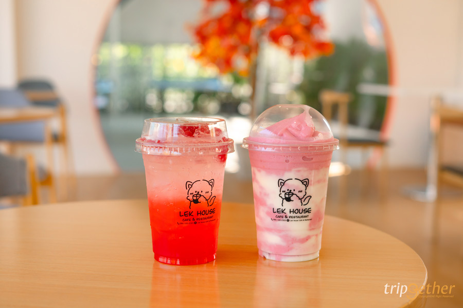 พามาปิดท้ายที่ คาเฟ่สไตล์ญี่ปุ่น ใกล้กรุงเทพ ที่เล็ก เฮ้าส์ คาเฟ่ แอนด์ เรสเตอรองท์ (Lek House Cafe & Restaurant) คาเฟ่และร้านอาหารขนาดใหญ่ บรรยากาศริมน้ำ มีให้เลือกถึง 3 โซนด้วยกัน โซนแรกเป็น โซนห้องแอร์ กว้างขวาง มีกระจกอยู่ทั่วทั้งร้าน ถัดมาเป็น โซนห้องญี่ปุ่น ที่ตกแต่งด้วยโทนสีขาว น้ำตาล และ โซนเอาท์ดอร์กลางสวน ที่มีน้ำตกจำลองขนาดใหญ่ที่ไหลลงสู่สระน้ำด้านล่างที่มีเหล่าปลาคาร์ปแหวกว่ายไปมา ในส่วนของเมนูมีให้เลือกจัดเต็มทั้งเมนูอาหาร เบเกอรี รวมทั้งเครื่องดื่มที่มีทั้ง coffee และ non – coffee ครบครัน