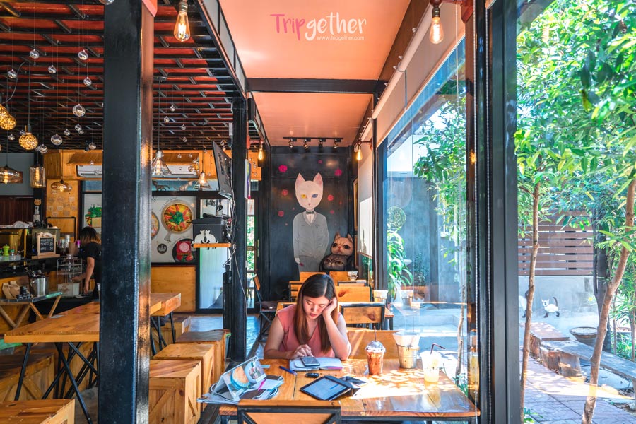 เดอะ คิทเท่น ค๊อฟฟี่ อาร์ต แอนด์ อีท คาเฟ่น่ารักท่ีตั้งอยู่ข้างศูนย์อนุรักษ์แมวไทย ใครที่เป็นทาสแมวต้องไม่พลาด ภายในร้านถูกจัดตกแต่งไว้อย่างน่ารัก มีภาพวาดแมวน่ารักๆ ประดับตกแต่งไว้ตามฝาผนัง ส่วนเมนูอาหารทางร้านก็มีให้อร่อยกันทั้งของหวานและของคาวสไตล์ฟิวชั่น นอกจากจะได้อิ่มอร่อยกับเมนูอาหารแล้วก็สามารถไปหาน้องแมวที่ศูนย์อนุรักษ์แมวไทยด้านข้างได้ด้วยนะคะ