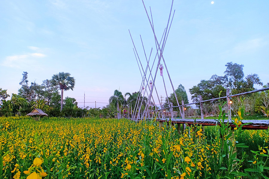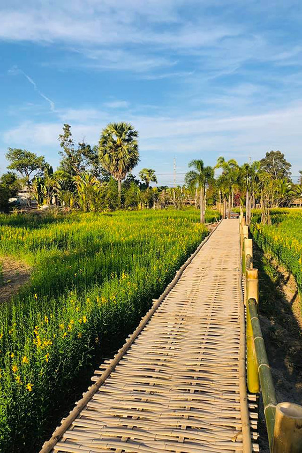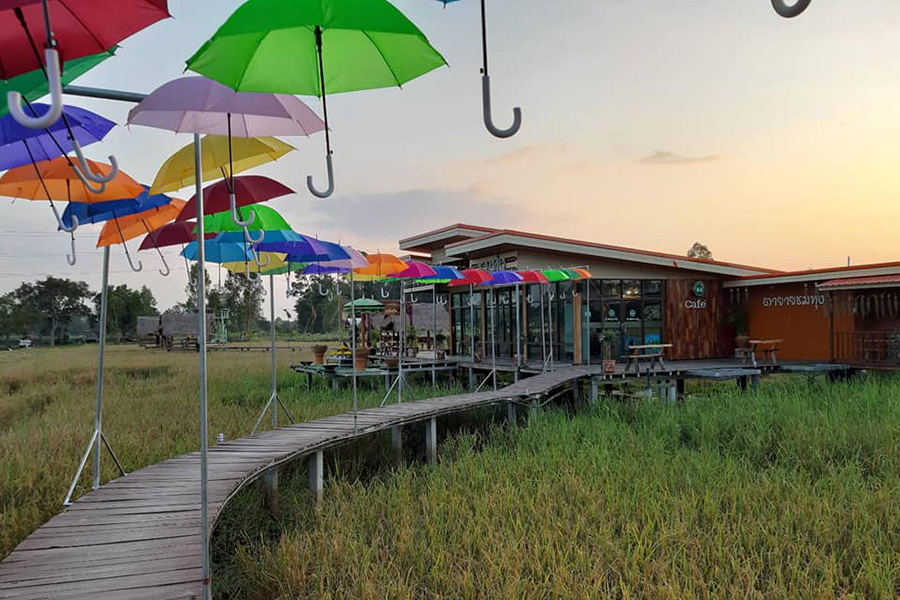 ตายายชมทุ่ง ร้านสไตล์ลูกทุ่งชนบท กลางทุ่งนาและความอุดมสมบูรณ์ของพืช ผัก ผลไม้ นอกจากจะเป็นร้านอาหารและคาเฟ่แล้ว ที่นี่ยังเป็นสถานที่ท่องเที่ยวเชิงเกษตรตามหลักปรัชญาเศรษฐกิจพอเพียงอีกด้วย ภายในร้านมีการนำเอาไอเดียจากของใช้ในชีวิตประจำวัน มาตกแต่งให้เกิดความสวยงาม ที่นี่จึงมีมุมถ่ายรูปสวยๆ มากมาย รวมถึงสะพานไม้ที่ทอดยาวออกไปกว่า 300 เมตร สำหรับเมนูอาหารก็มีหลากหลายทั้งก๋วยเตี๋ยวเรือห้อยขา ก๋วยจั๊บ ลาบ ส้มตำ และยังมีขนมต่างๆ เช่น ขนมถ้วยตายาย รวมถึงกาแฟและเครื่องดื่มอื่นๆ พร้อมให้บริการแบบอิ่มหนำทั้งท้องและบรรยากาศ