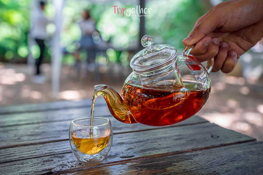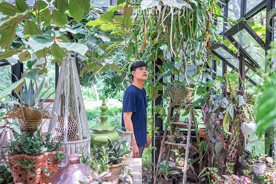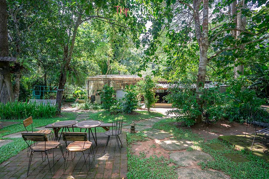 และอีกหนึ่งร้านคาเฟ่กลางป่า ที่อยู่ไม่ไกลจากที่เดิมมากนัก ดิ ไอรอนวู๊ด ร้านนี้ให้ฟีลเหมือนร้านคาเฟ่ในสวนหลังบ้านเช่นกัน แต่เป็นบ้านแบบอังกฤษ เหมาะแก่การแต่งตัวสวยๆ มาจิบชายามบ่าย ที่นี่โดดเด่นด้วยตัวร้านที่เป็นบ้านสีขาว มาในดีไซน์แบบวินเทจ และมุมไฮไลท์ที่เรียกว่าไม่ว่าใครมาก็ต้องแชร์รูป ก็คือบ้าน Glass House หลังสวย ที่ข้างในมากมายด้วยแคคตัสให้ถ่ายรูปฟินกัน ตบท้ายด้วยเมนูที่นี่ก็มีครบทั้งคาวหวาน ส่วนมนูเด็ดเลยต้องยกให้ ข้าวคลุกกะปิ ที่นอกจากจะรสชาติกลมกล่อมแล้ว ยังแต่งได้อย่างหรูหรา เข้ากับบรรยากาศสุดๆ