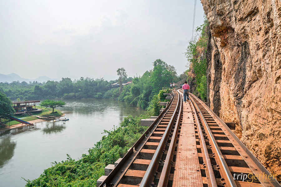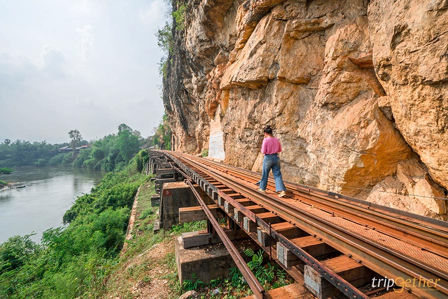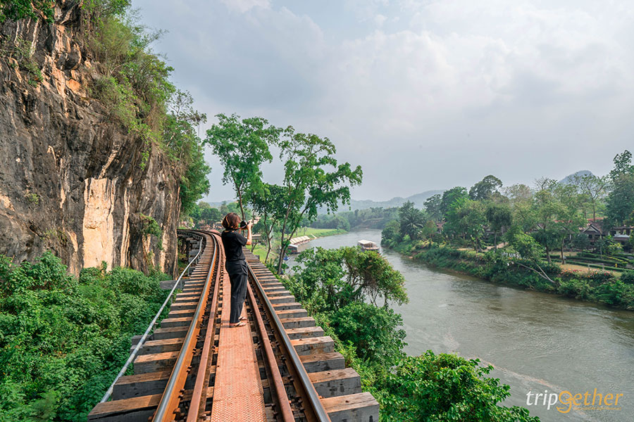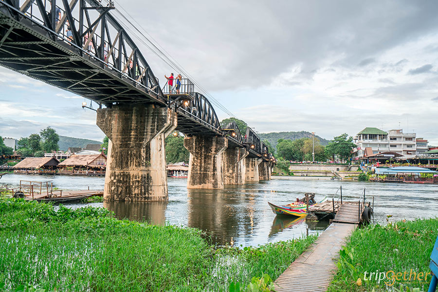 มาถึงกาญจนบุรีจะพลาดมาเช็คอินจุดสำคัญอย่าง สะพานข้ามแม่น้ำแคว ได้อย่างไร อีกหนึ่งแหล่งท่องเที่ยวที่มีประวัติศาสตร์มาตั้งแต่สมัยสงครามโลกครั้งที่ 2 เป็นรางรถไฟทอดยาว 300 เมตรบนสะพานข้ามแม่น้ำ ซึ่งเป็นหนึ่งในสายรถไฟที่สร้างโดยเชลยศึกที่ทหารญี่ปุ่นเกณฑ์มาซึ่งบริเวณสะพานข้ามแม่น้ำแควก็ยังคงใช้งานจนมาถึงปัจจุบัน ในยุคสมัยสงครามโลกครั้งที่ 2 บริเวณนี้เป็นอีกหนึ่งที่ที่สร้างยากมากเนื่องจากฐานดินหนาแน่นแล้วต้องใช้เพียงแรงคนในการสร้างและช่วงนั้นเริ่มมีโรคระบาดเกิดขึ้นทำให้มีเฉลยศึกหลายคนต้องเสียชีวิตจากโรคระบาดเพราะขาดยารักษาโรค ขาดสารอาหารและการใช้แรงงานอย่างทารุณ ต่อมาสะพานโดนฝ่ายสัมพันธมิตรทิ้งระเบิดลงมาทำให้สะพานหักเป็นสองท่อนเมื่อสงครามสงบลงสะพานบริเวณเหล็กกั้นเหลี่ยมที่เราเห็นในปัจจุบันคือบริเวณที่โดนระเบิดและได้รับการปรับปรุงซ่อมแซมโดยการรถไฟแห่งประเทศไทย เรียกว่าเป็นแหล่งท่องเที่ยวทางประวัติศาสตร์ที่เป็นแลนมาร์คของจังหวัดกาญจนบุรีที่ไม่ควรพลาดเลย