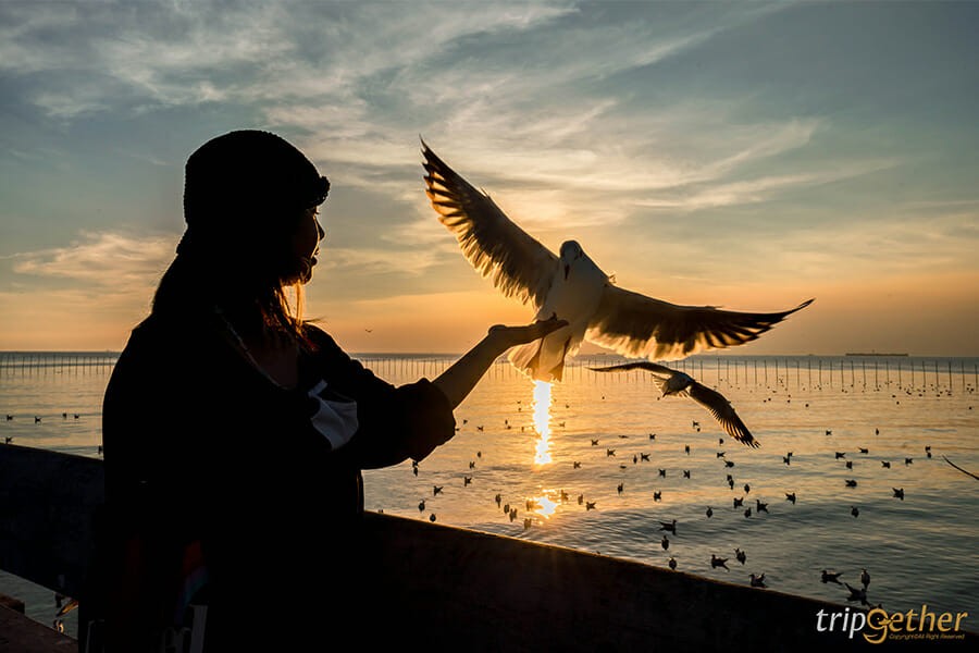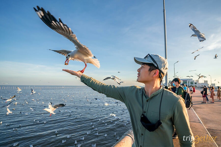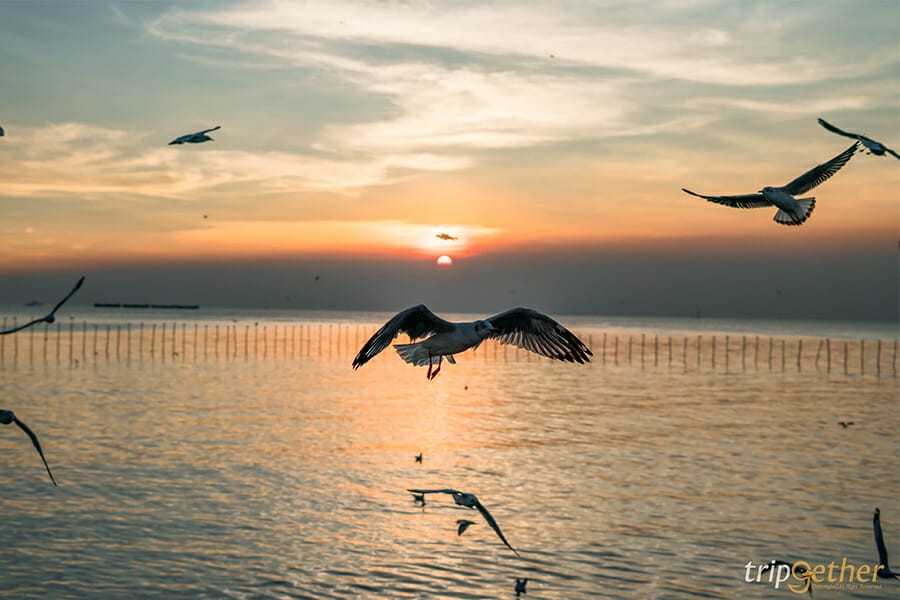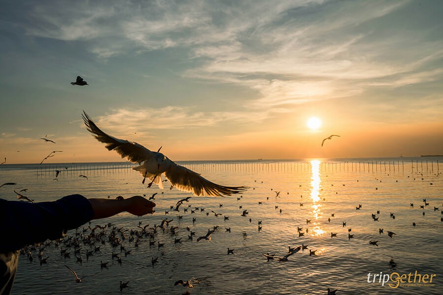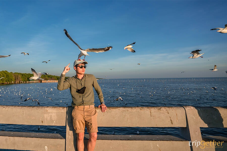 สถานตากอากาศบางปู ที่ท่องเที่ยวยอดนิยมบรรยากาศริมทะเลของจังหวัดสมุทรปราการ ที่ผู้คนนิยมมาพักผ่อน กินข้าว เดินเล่น ถ่ายรูปกันที่สะพานสุขตาที่ทอดยาวไปถึงศาลาสุขใจที่อยู่กลางทะเล ซึ่งช่วงฮิตของที่นี่ก็คือประมาณเดือนตุลาคม – เดือนเมษายนของทุกปีนั่นเอง ที่จะมีนกนางนวลจำนวนมากมาเยือนสถานตากอากาศบางปูแห่งนี้ และมีผู้คนที่มาต้อนรับ มาถ่ายรูป มาให้อาหารกันอย่างมากมาย ใครอยากถ่ายรูปสวยๆ กับนกนางนวลขอแนะนำให้มาในช่วงพระอาทิตย์ใกล้ตกดิน เพราะทั้งฝูงนกนางนวลและบรรยากาศทะเลและท้องฟ้าในยามเย็นสวยเกินบรรยาย รับรองว่าได้รูปสวยถูกใจกลับไปแน่นอน
