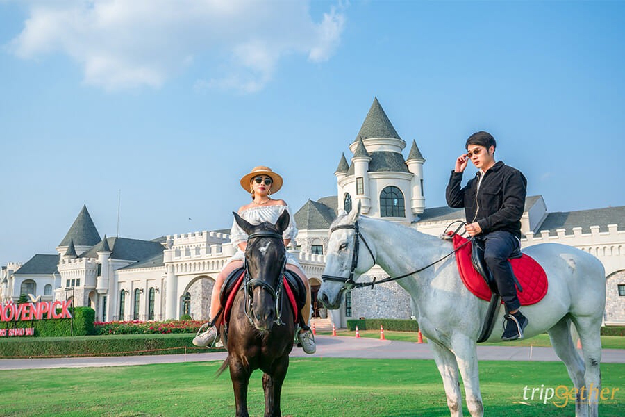 Mövenpick Resort Khao Yai รีสอร์ทสุดหรู 5 ดาว ระดับนานาชาติแห่งแรกบนเขาใหญ่ท่ามกลางธรรมชาติ ตั้งอยู่บนพื้นที่ของ มายโอโซน เขาใหญ่ 1,300 ไร่ ที่จะทำให้คุณรู้สึกเหมือนหลุดเข้าไปอยู่ในเมืองแห่งเทพนิยาย หรือให้ความรู้สึกเหมือนได้ไปเยือนยุโรปด้วยความโดดเด่นของปราสาทนั่นเอง ด้วยการตกแต่งสไตล์ยุโรปที่มาพร้อมสถาปัตยกรรมแบบทัสคานี ขอบอกว่ามาพักที่นี่ถ่ายรูปมุมไหนก็สวย เดินไปทางไหนก็ได้รูปแน่นอน แล้วยิ่งถ้าได้ถ่ายรูปตอนขี่ม้าคูลๆ ถ่ายรูปคู่กับน้องม้ามีวิวด้านหลังเป็นปราสาทขอบอกเลยว่าปังสุดๆ แล้วที่พลาดไม่ได้ที่นี่มีสวนสัตว์อย่าง My Ozone Animal Club ให้ได้มาเดินเล่นและให้อาหารสัตว์กันด้วย ไม่ว่าจะ แพะ กวาง ควาย ม้า และกระต่าย อย่าลืมแวะมาชมความน่ารักของน้องๆ กันนะ