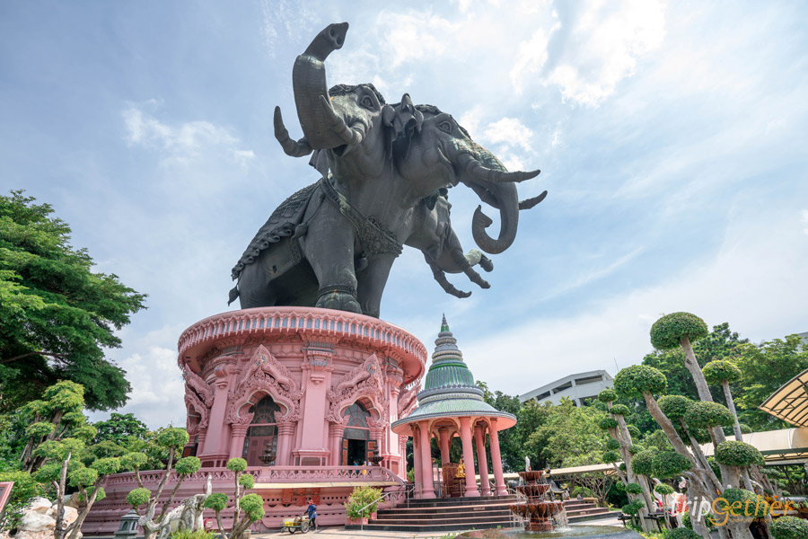 พิพิธภัณฑ์ช้างเอราวัณ หนึ่งในสถานที่ท่องเที่ยวที่มีชื่อเสียงของจังหวัดสมุทรปราการ มีจุดสังเกตที่โดดเด่นเป็นประติมากรรมลอยตัวรูปช้าง 3 เศียร ที่มีความสูงกว่า 43 เมตร หรือประมาณตึก 14 ชั้น ยิ่งใหญ่อลังการมากๆ ภายในพิพิธภัณฑ์ช้างเอราวัณยังมีความงดงามเป็นอย่างมากซึ่งแบ่งเป็น 3 ชั้น ตามหลักไตรภูมิคือ ชั้นบาดาล ชั้นโลกมนุษย์ และชั้นสวรรค์ นั่นเอง แอบกระซิบว่าที่นี่ยังเป็นอีกจุดที่ผู้คนมักไปกราบไหว้ขอพรกันเป็นจำนวนมากด้วย
