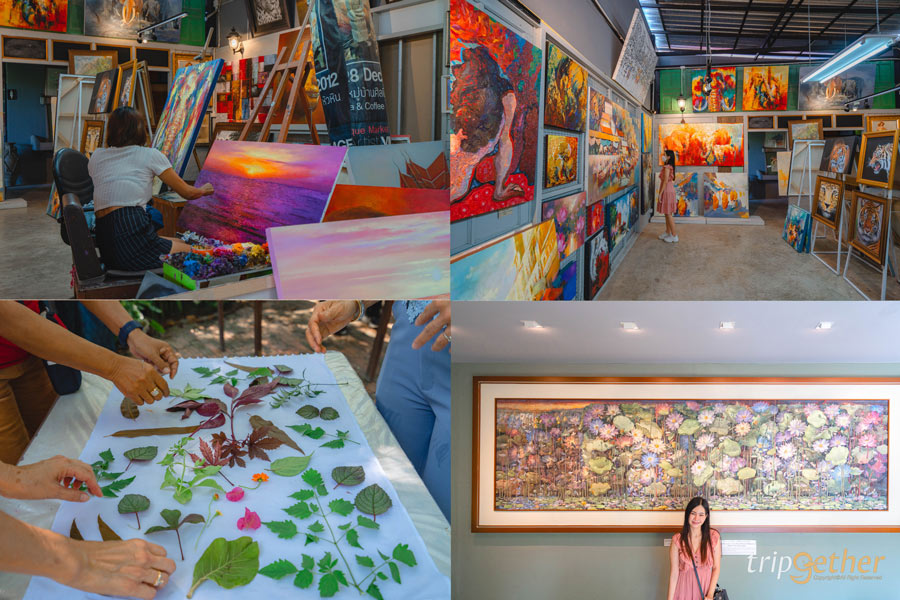 บ้านศิลปินหัวหิน เป็นสถานที่แรกของวันที่สองของทริปเสาร์ – อาทิตย์ โดยบ้านศิลปินหัวหินแห่งนี้เป็นศูนย์รวมศิลปกรรมและงานศิลปะชื่อดังของหัวหิน ภายในพื้นที่ยังแบ่งออกเป็นหลากหลายโซนให้ได้เดินชม ใช้เวลาเสพงานศิลป์กัน โดยมีทั้งโซนเวิร์คช็อป ที่สามารถทำกิจกรรมได้หลากหลาย อย่าง Eco Print เพ้นท์ลายใบไม้ลงบนผ้า โซนพิพิธภัณฑ์ที่จัดแสดงงานศิลป์มากมาย โซนสตูดิโอที่มีเหล่าศิลปินมานั่งสร้างสรรค์งานให้ได้ดูกันแบบสดๆ นอกจากนี้ยังมีตลาดแฮนด์เมด ที่มีทั้งของที่ระลึกอาร์ตๆ และคาเฟ่ให้ได้นั่งพักผ่อนกันอีกด้วย
