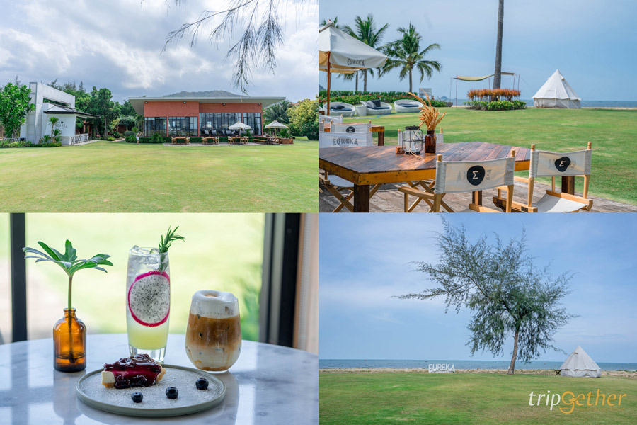 ก่อนกลับ แวะใช้เวลาสบายๆ กันที่ Eureka beach café คาเฟ่บรรยากาศริมชายหาดสวยๆ มีสนามหญ้าสีเขียวที่ตัดกับสีฟ้าของน้ำทะเลและท้องฟ้าได้เป็นอย่างดี ตัวร้านตกแต่งด้วยสไตล์โมเดิร์นที่มีทั้งที่นั่งแบบอินดอร์ที่เป็นตัวอาคาร มีกระจกบานใหญ่อยู่ทั่วทั้งร้าน สามารถมองวิวทะเลได้แบบเต็มๆ และโซนเอาท์ดอร์ที่มีทั้งบีนแบค ชุดที่นั่ง และกระโจมสุดชิลล์ ให้ได้สัมผัสบรรยากาศสุดสบายกับลมเย็นๆ พร้อมกับเสียงคลื่นในขณะที่ดื่มด่ำกับเมนูอาหารและเครื่องดื่มของที่นี่ได้แบบเน้นๆ