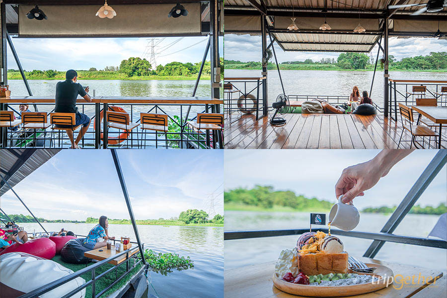 ปิดท้ายทริปเสาร์ – อาทิตย์สายกรีน ด้วยการแวะเข้ามานั่งพักผ่อนกันที่ ธารา คอฟฟี่ คาเฟ่เรือนแพกลางน้ำบรรยากาศดีแถมมีฝั่งตรงข้ามเป็นพื้นที่โล่งสีเขียว ทำให้อากาศโปร่งโล่งสบาย มีลมพัดเข้ามา เหมาะกับการนั่งชิลล์ๆ โซนที่นั่งมีทั้งโซนที่เป็นห้องแอร์แบบเย็นฉ่ำและโซนเอาท์ดอร์ริมน้ำพร้อมกับที่นั่งบีนแบคให้ได้เอนกลังมองน้ำกันสบายๆ ส่วนเมนูอาหารของที่นี่มีทั้งอาหารแนวตะวันตก เมนูของหวาน และเครื่องดื่มให้เลือกเพียบ